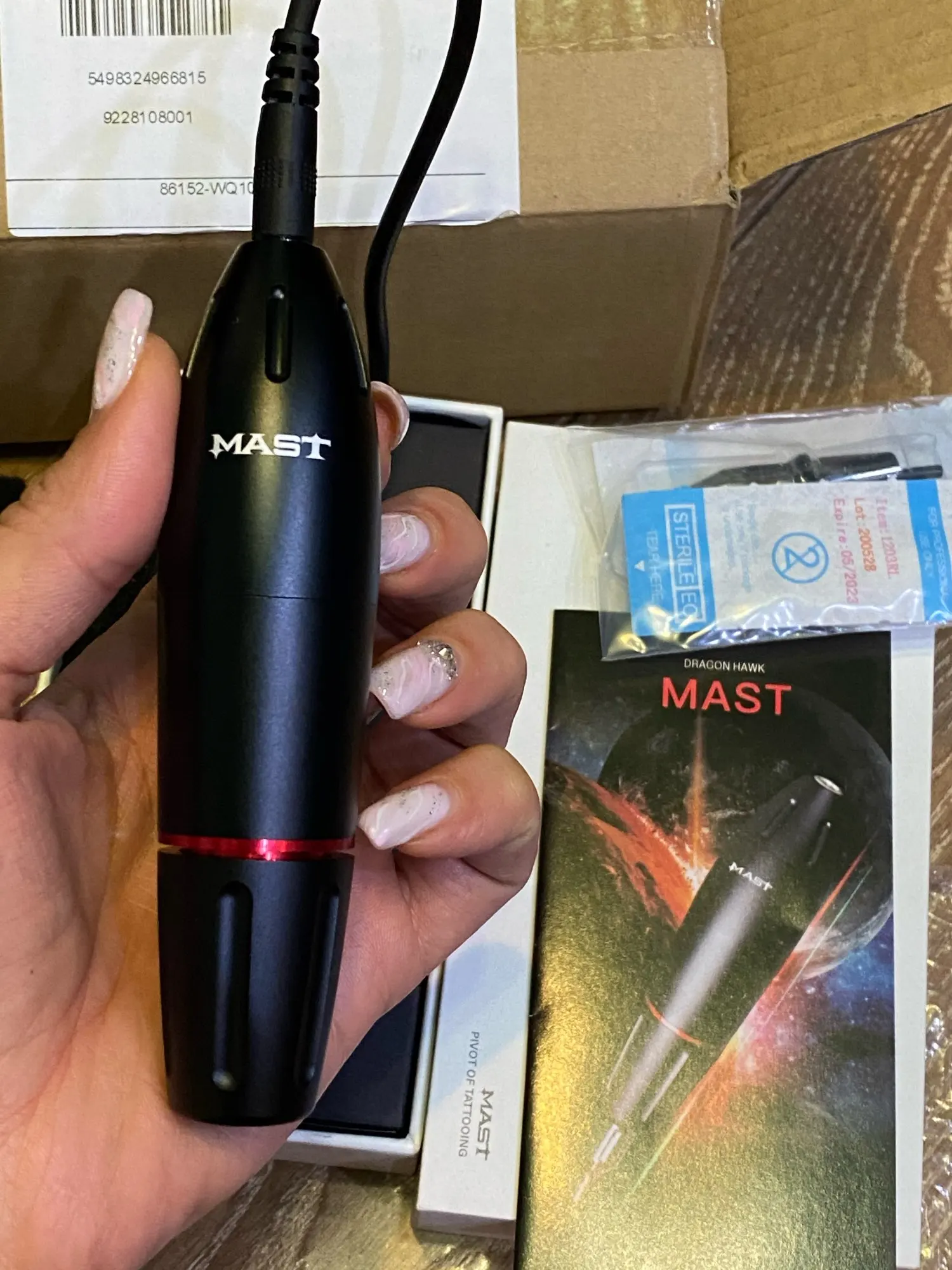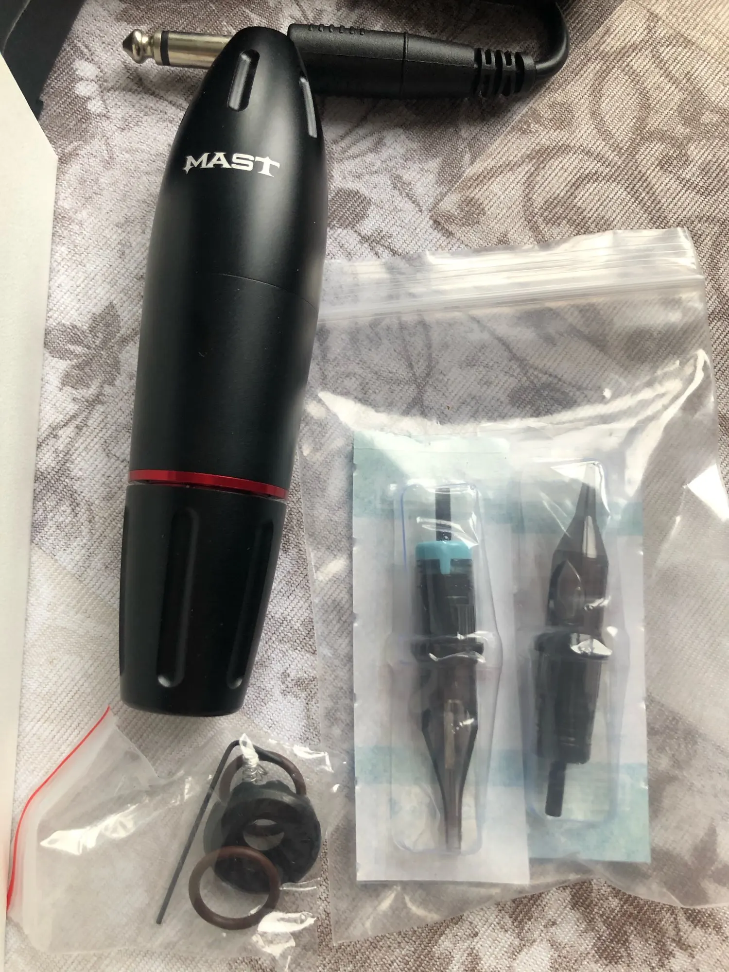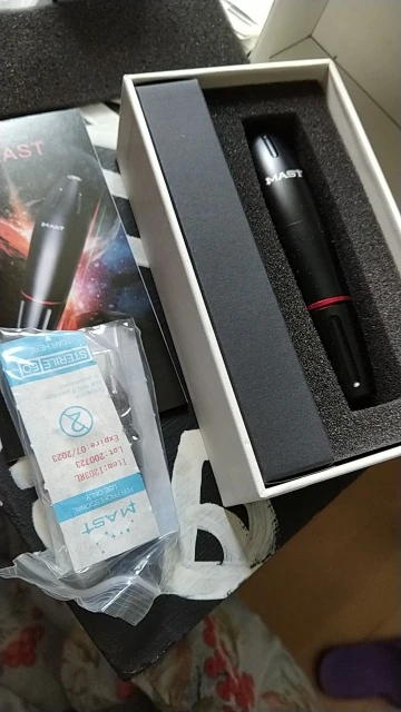 В Москву пришла посылка за неделю, курьер принёс прям домой. Все как в описании, машинка с клипкордом и 2мя катриджами маст в подарок. Машина работает с такой ощутимой вибрацией, с непривычки тяжеловато и толстовата, но прокрас оставляет хороший. Для работы с волосками и тонкими ровными линиями вряд-ли подойдёт, а вот для растушевки идеальна. Я довольна