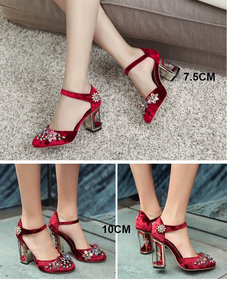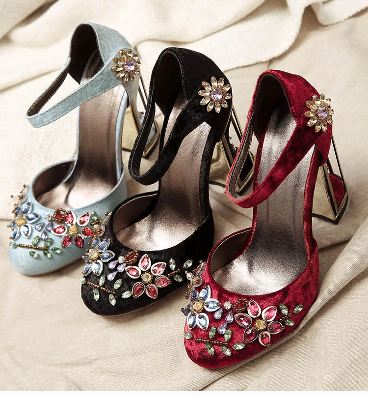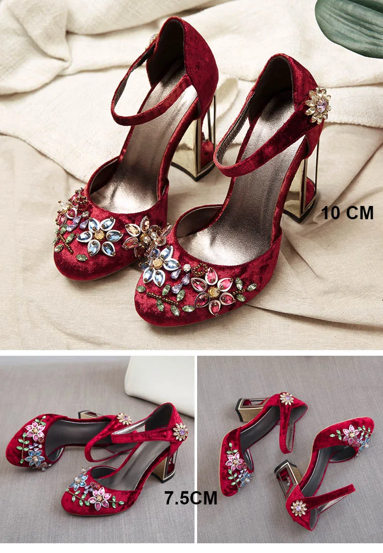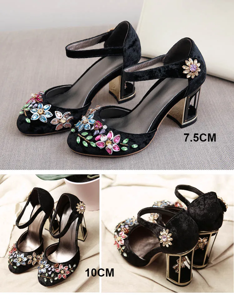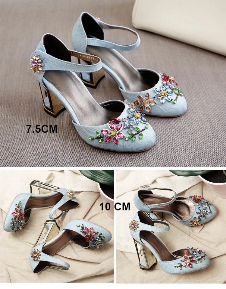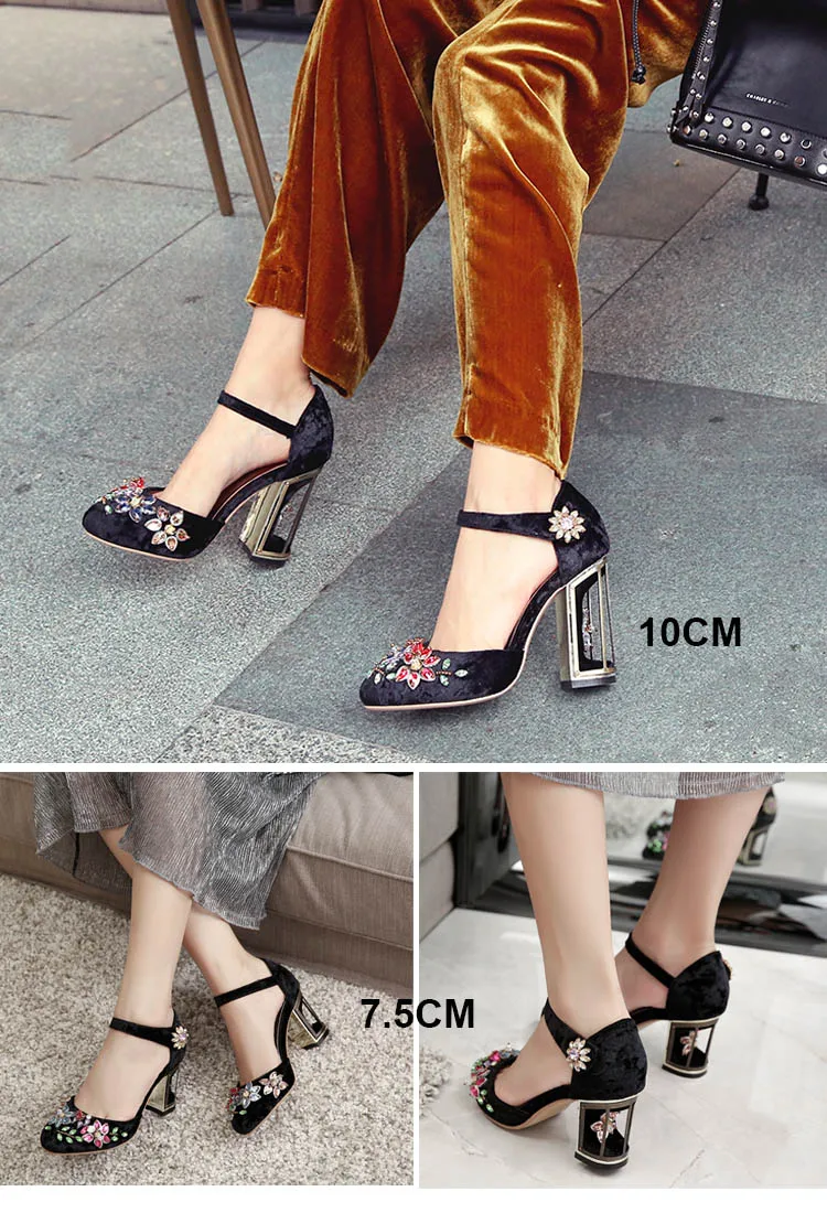 Женские туфли-лодочки в стиле Мэри Джейн, украшенные странными кристаллами, на высоком каблуке 10 см, на липучке, свадебные туфли ручной работы со стразами, FT028
