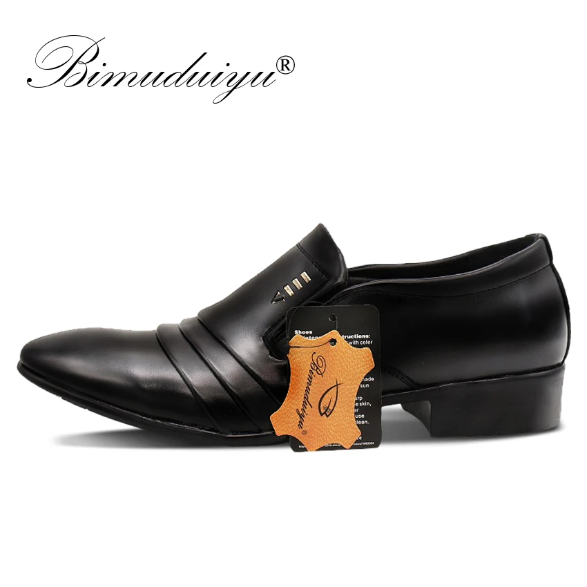 BIMUDUIYU, роскошные брендовые модные деловые модельные мужские лоферы из искусственной кожи, черные туфли с острым носком, туфли-оксфорды, дышащие официальные свадебные туфли
