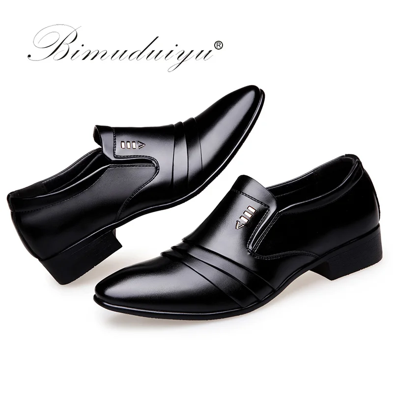 Брендовые Модные мужские деловые Мокасины BIMUDUIYU из искусственной кожи, черные туфли с острым носком, оксфорды, дышащая деловая Свадебная обувь