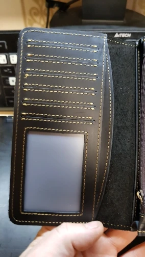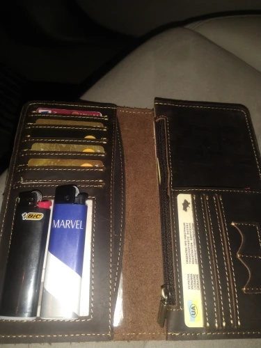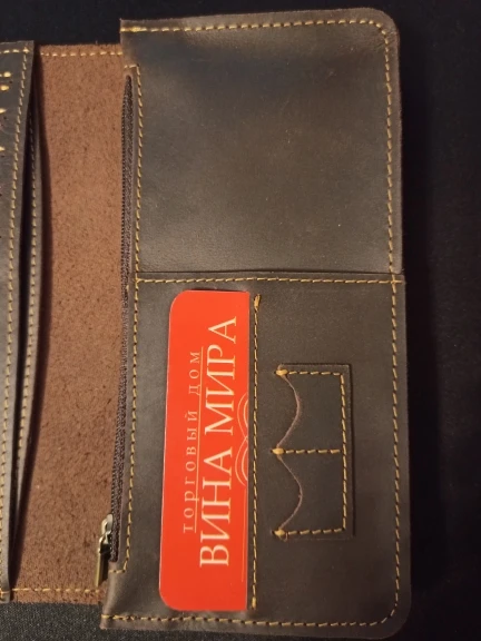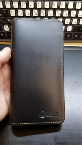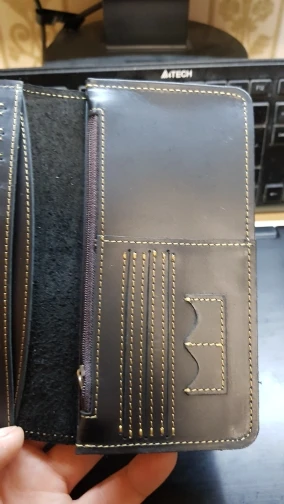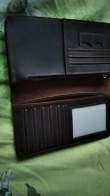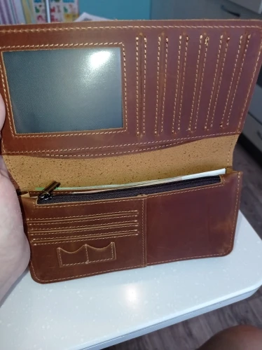 кошелек норм кожа не кожа я не разбираюсь но он топчик очень мягкий в местительный прям как на фото отсеки есть все очень удобно заказом доволен ну немного додлго шло ну а так всё ок нормальное качество нитак и ну и всё!
