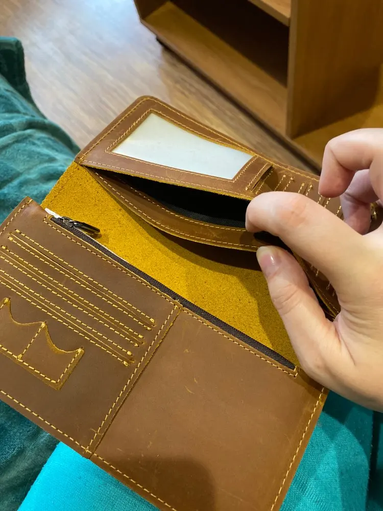 Esta muy bonita me gustó buen espacio para todo tarjetas dinero me encanto