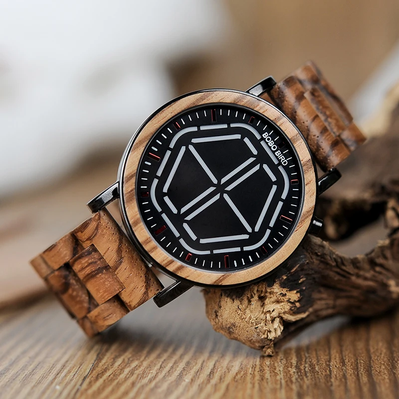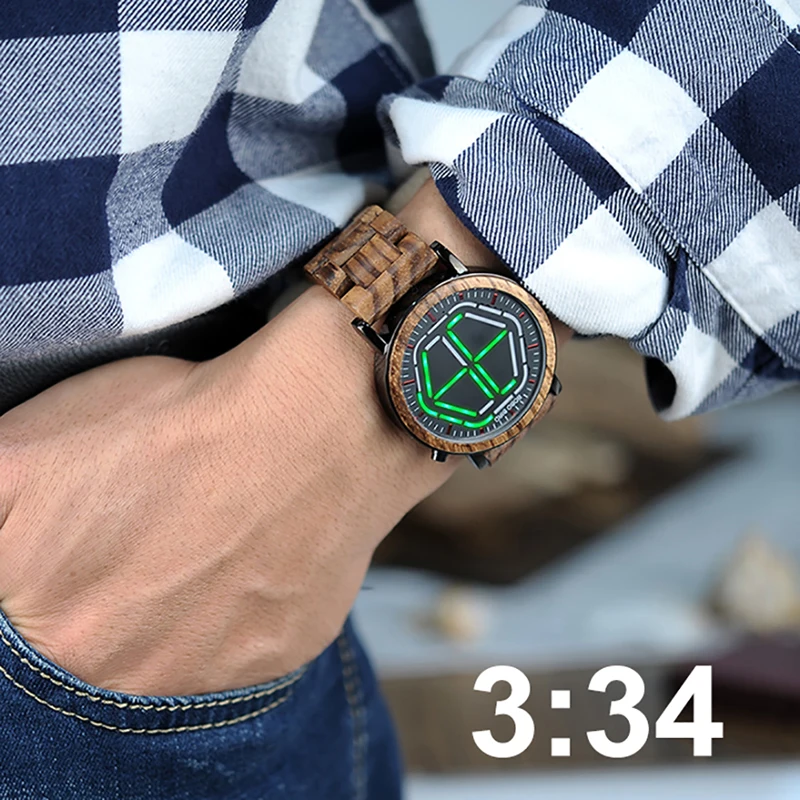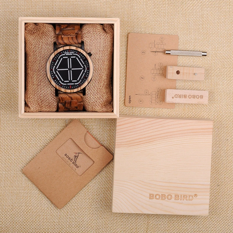 Мужские наручные часы BOBO BIRD, деревянные, с цифровым светодиодным дисплеем, с ночным видением, доступны 4 цвета