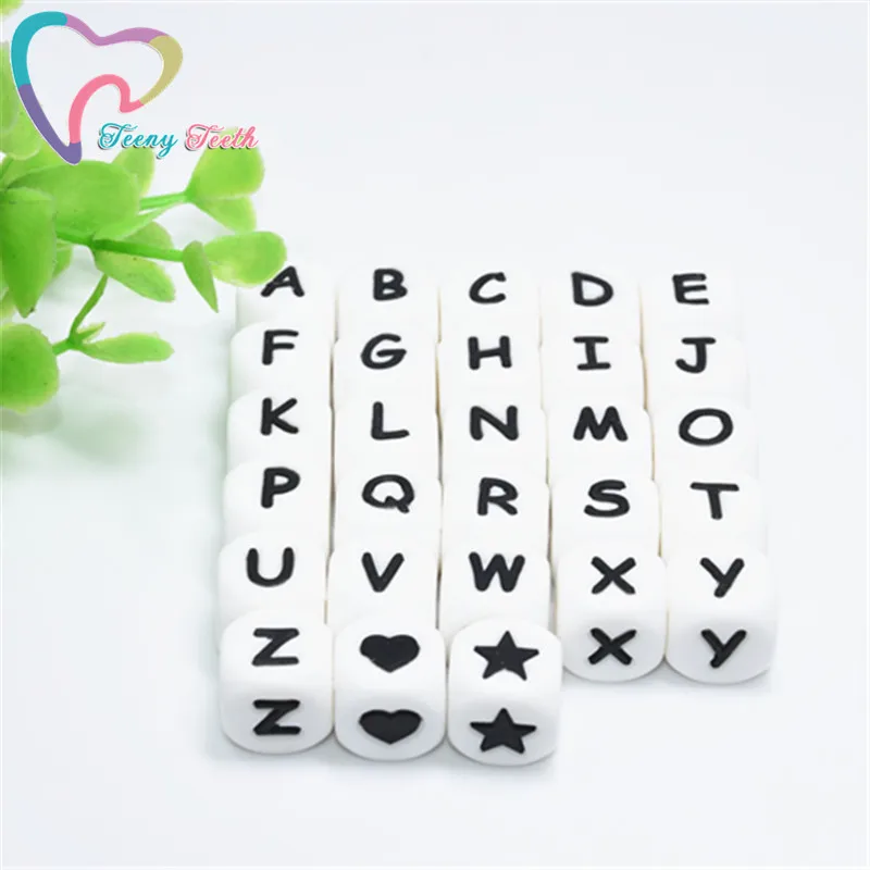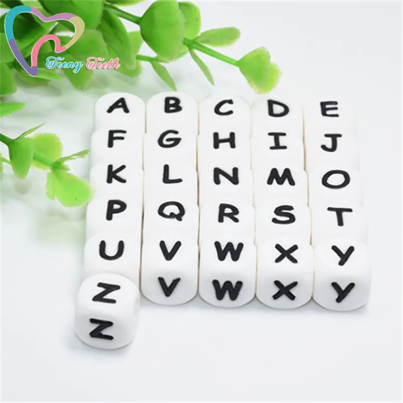 Teeny Teeth 100 шт. кубик алфавита пищевой силикон бусины в 26 букв BPA бесплатно силиконовые жевательные бусины для прорезывания зубов жевательные бусины
