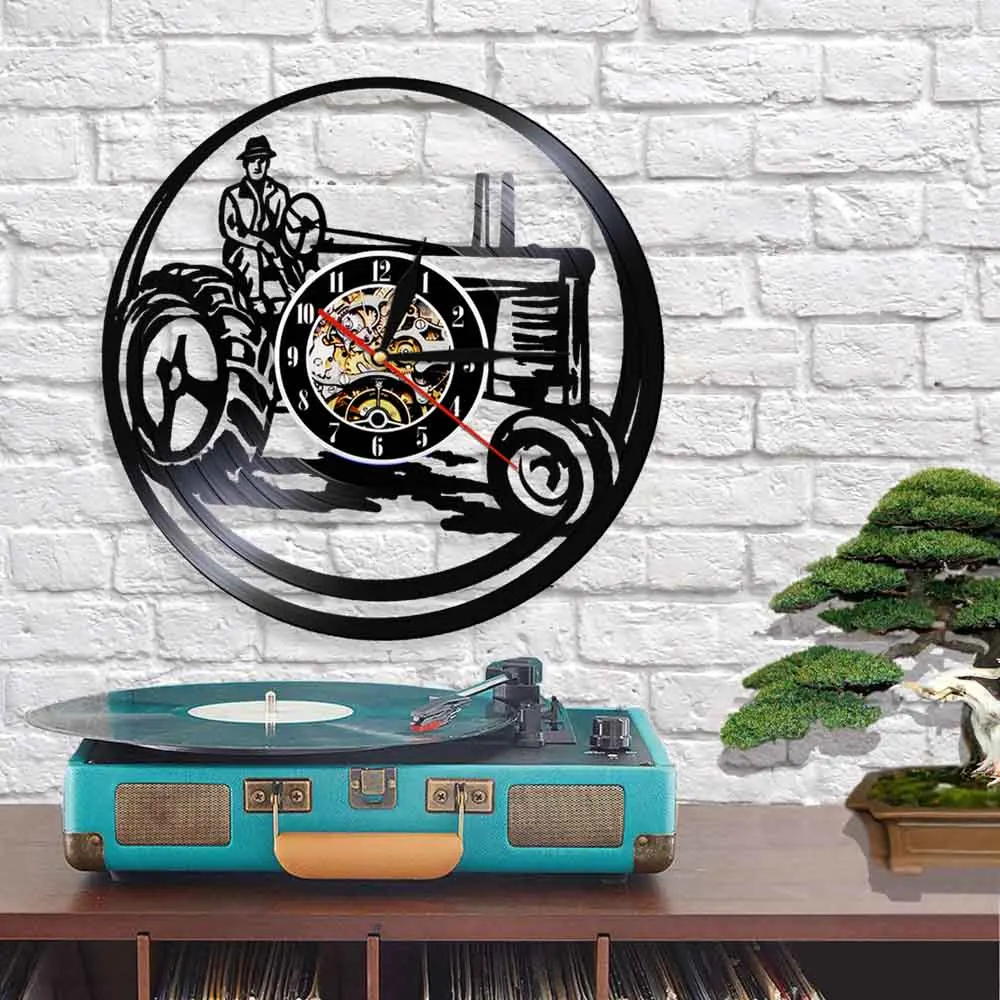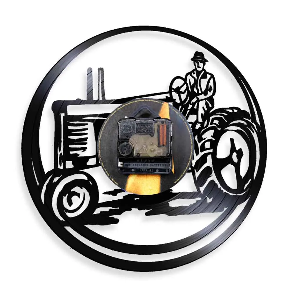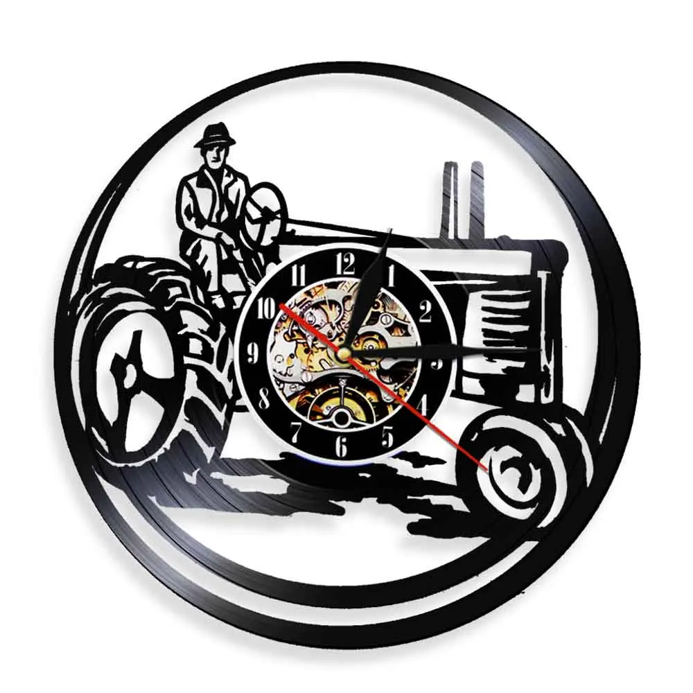 Ферма трактор сельское хозяйство искусство Виниловая пластинка настенные часы человек на трактор деревенский фермерский дом декор комнаты Настенные часы фермер Cropper подарок