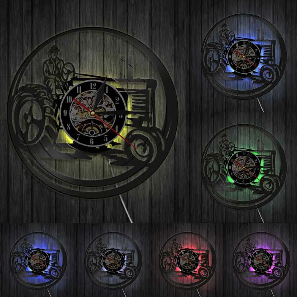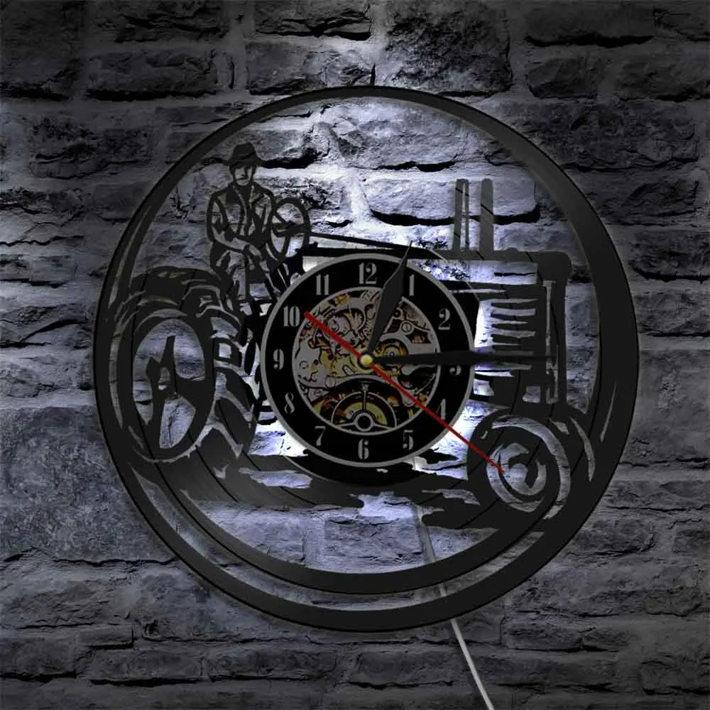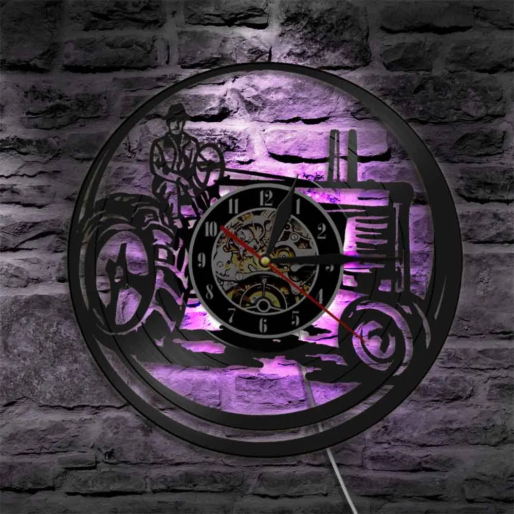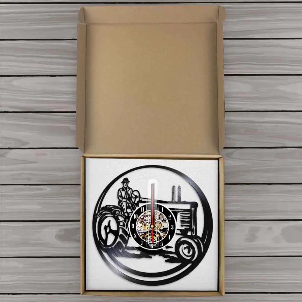 Ферма трактор сельское хозяйство искусство Виниловая пластинка настенные часы человек на трактор деревенский фермерский дом декор комнаты Настенные часы фермер Cropper подарок