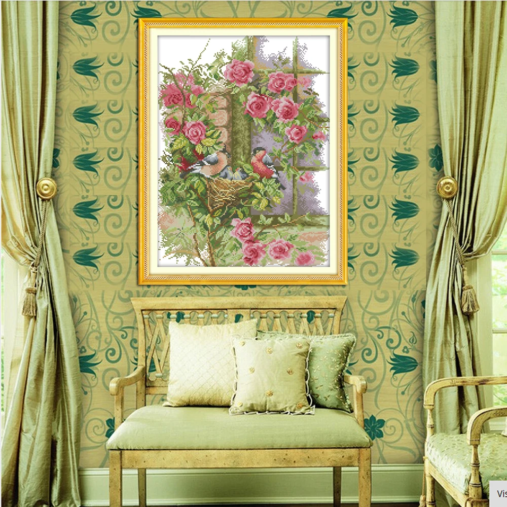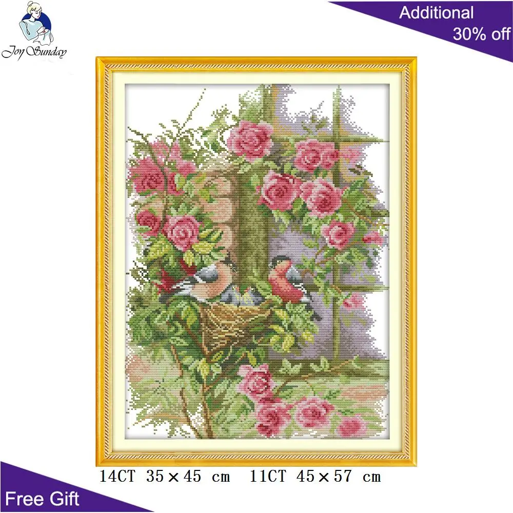 Joy Sunday птицы и цветы вышивка крестиком D527 14CT 11CT штампованный и Счетный номер кровати домашний декор счастливый семейный набор крестиков