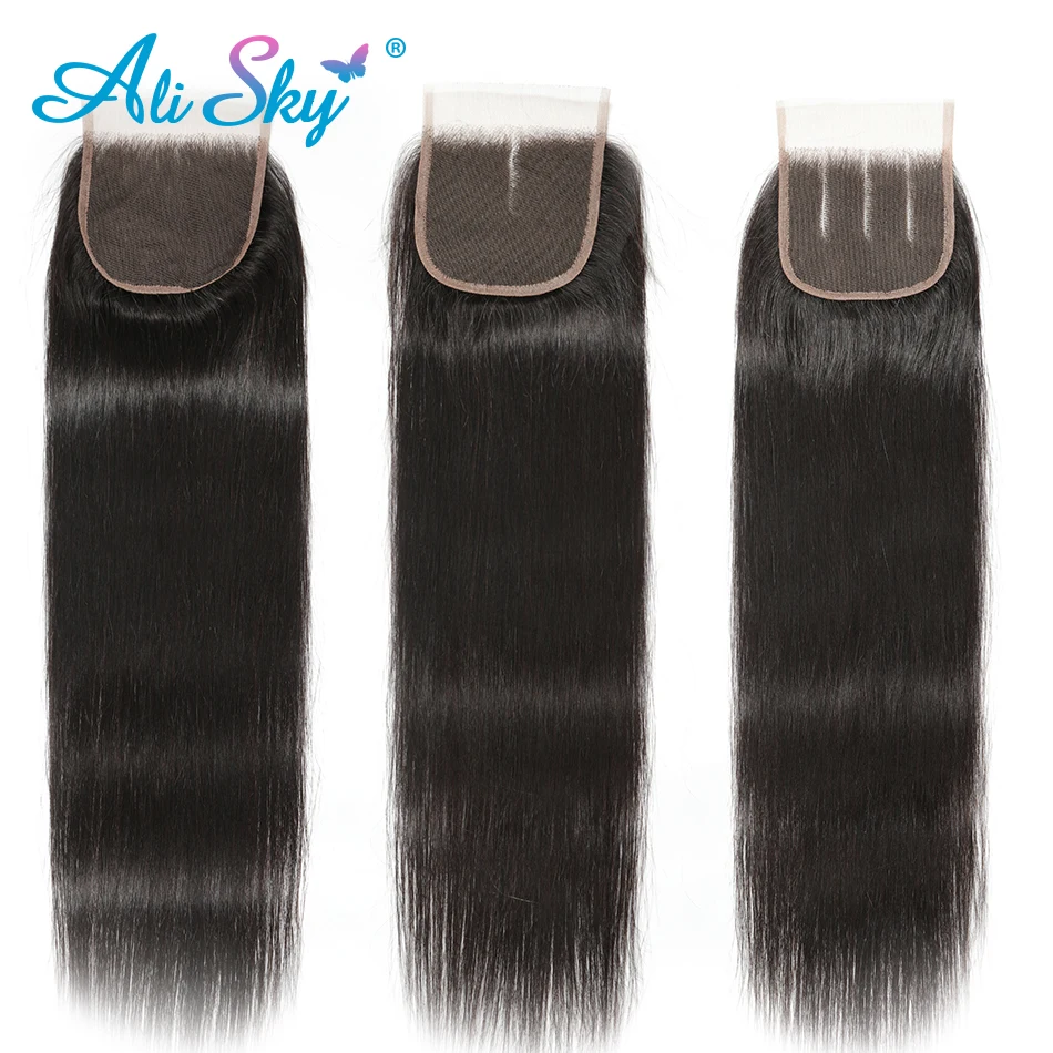 Alisky прямые волосы закрытие 4x4 человеческие волосы бразильские в...