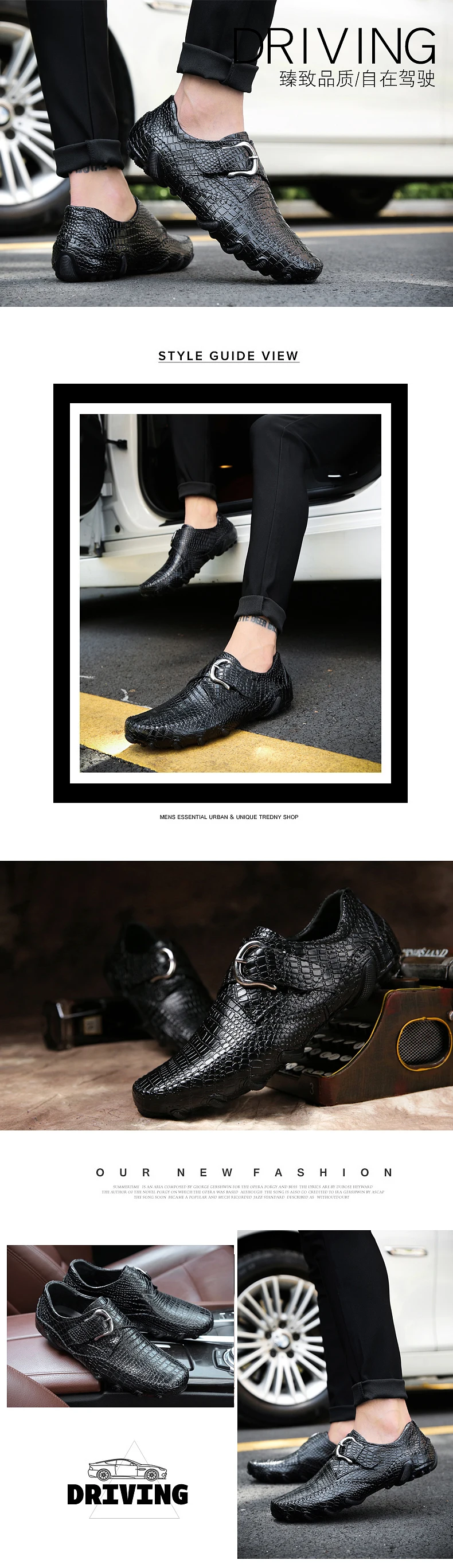 Брендовые мужские лоферы; Сезон весна-осень; Мужская повседневная обувь; Обувь для вождения из натуральной кожи; Крокодиловая текстура; Мужская обувь на плоской подошве; Размера плюс