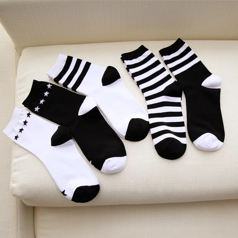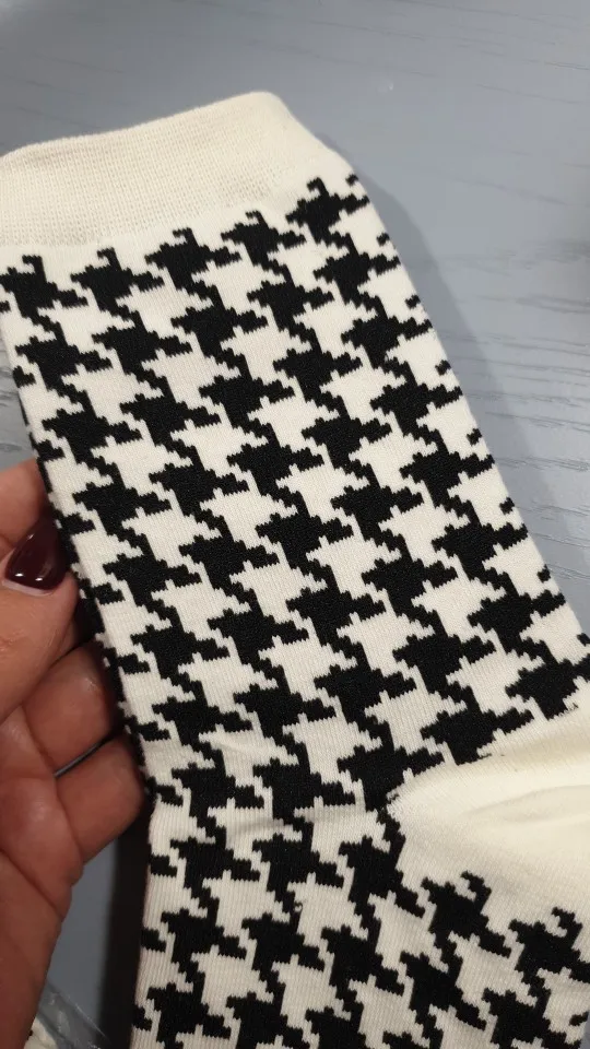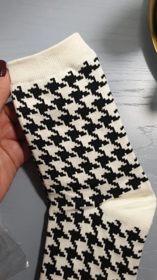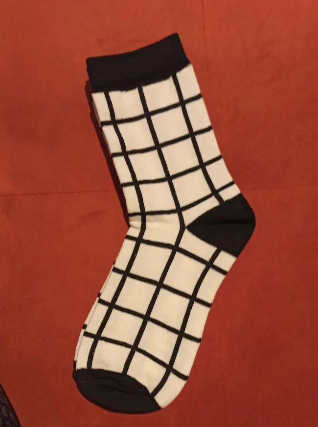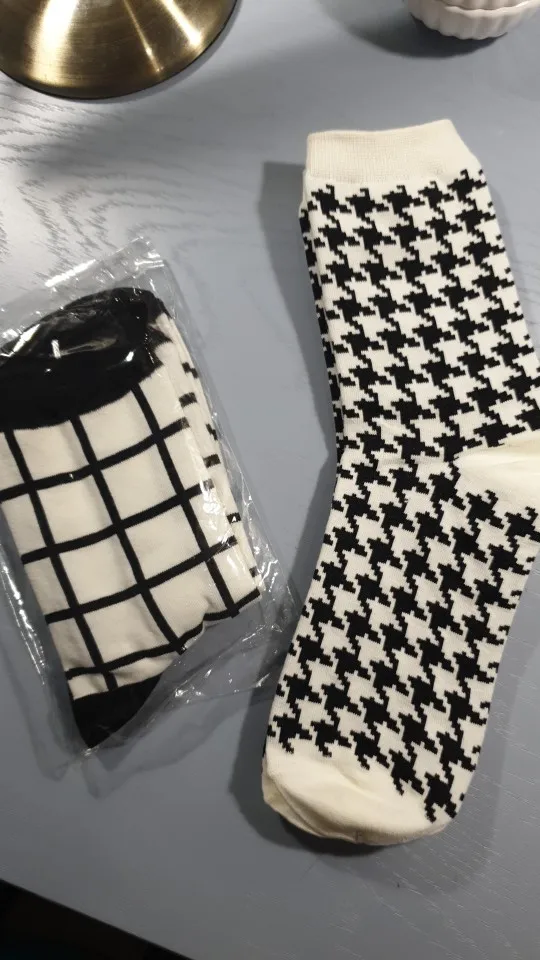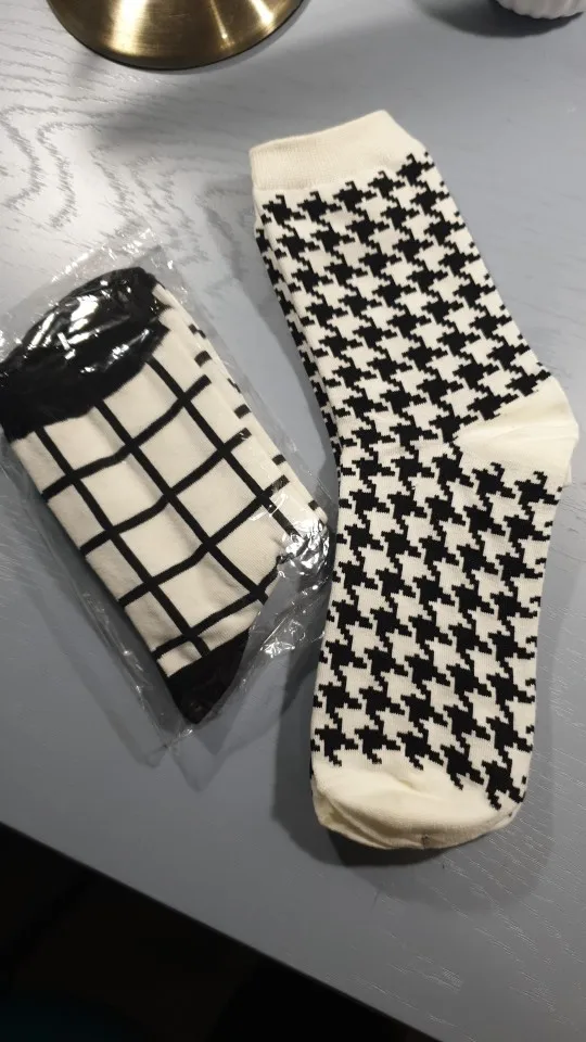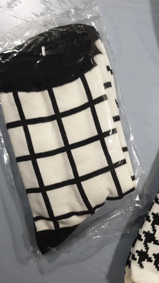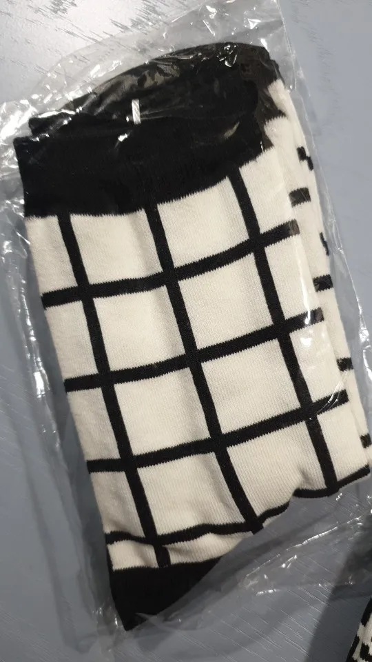 Женские Классические носки в клетку, хлопок, в стиле Харадзюку, винтажные, в белую и черную клетку, полосатые, сетчатые носки