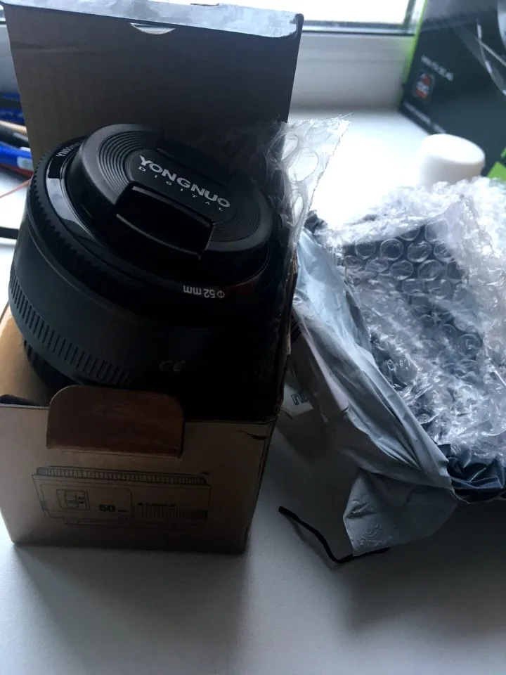 Моя прелесть)) Шёл объектив 5 дней до Оренбурга, привёз курьер. Коробка была в почтовом пакете, как видно на фото все в целости и сохранности. На мой 550D сел отлично, сразу опробовала в работе, результат понравился. Боялась, что автофокус не будет работать, как пишут в комментариях, но пока работает, посмотрим дальше. Позже загружу фото снятые на объектив.