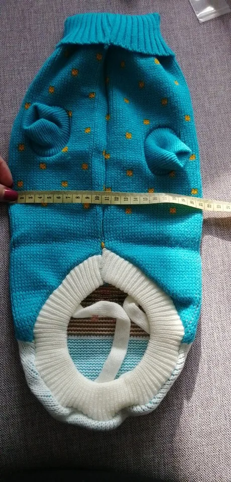 Выглядит хорошо. Мой Котенок 4,4 кг. Я думаю, что больший размер был бы лучше. Немного уютно облегает живот и руки. Я вырезал низ, чтобы создать плащ. Таким образом, она все еще может быть теплой, но может двигаться лучше. Без рукавов.
