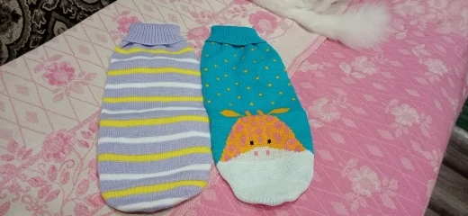 Я заказывала три разных по цвету одежды для котов, о чем написала продавцу. Но, получила посылку с тремя одинаковыми . Открыла спор и получила часть денег назад. Коты не оценили подарок. Вырез для передних лапок сделан очень низко и им не удобно в них ходить .