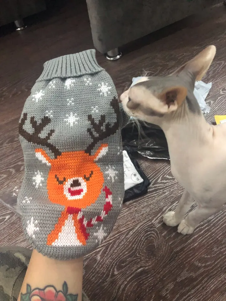 очень красивый свитер. качество огонь. кошка пока сопротивляется, но как наряжу сфоткаю)
