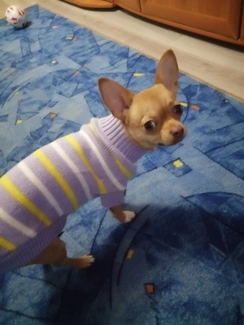 кофта очень хорошего качества. на йорка 2,4кг подошла идеально. теплая и удобно одевается доставка быстрая