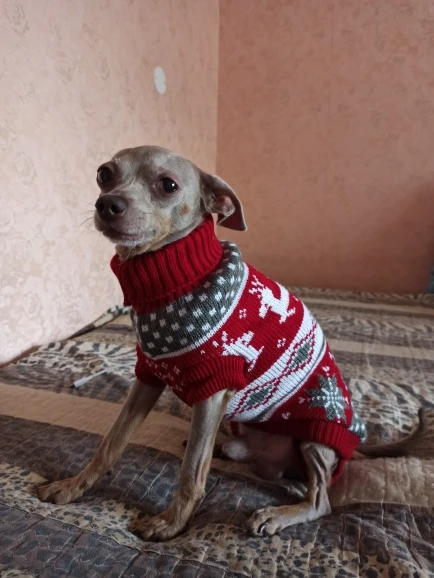 Крутой свитер. Теплая, плотная вязка - при этом свитер мягкий, не колется (собака в нем ни разу не почесалась). За день до доставки заказала еще один свитер собаке на Озоне. Так вот если судить по качеству - свитер с Алика, в разы лучше. Советую!