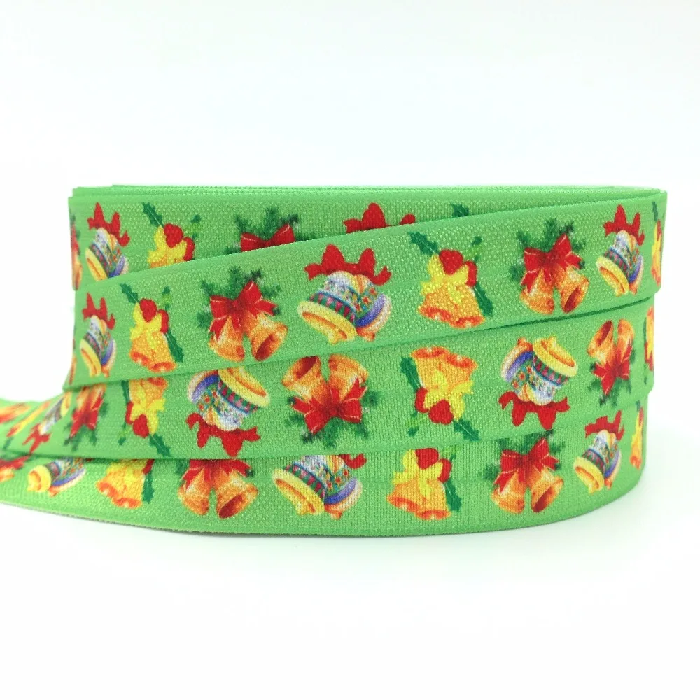 Горячая Распродажа, Зеленая эластичная лента для волос с принтом «колокольчик», повязка на голову 10 ярдов/партия