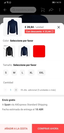 Страна: ES Color: RED Size: S Доставка: Standard Shipping 27.03.2021