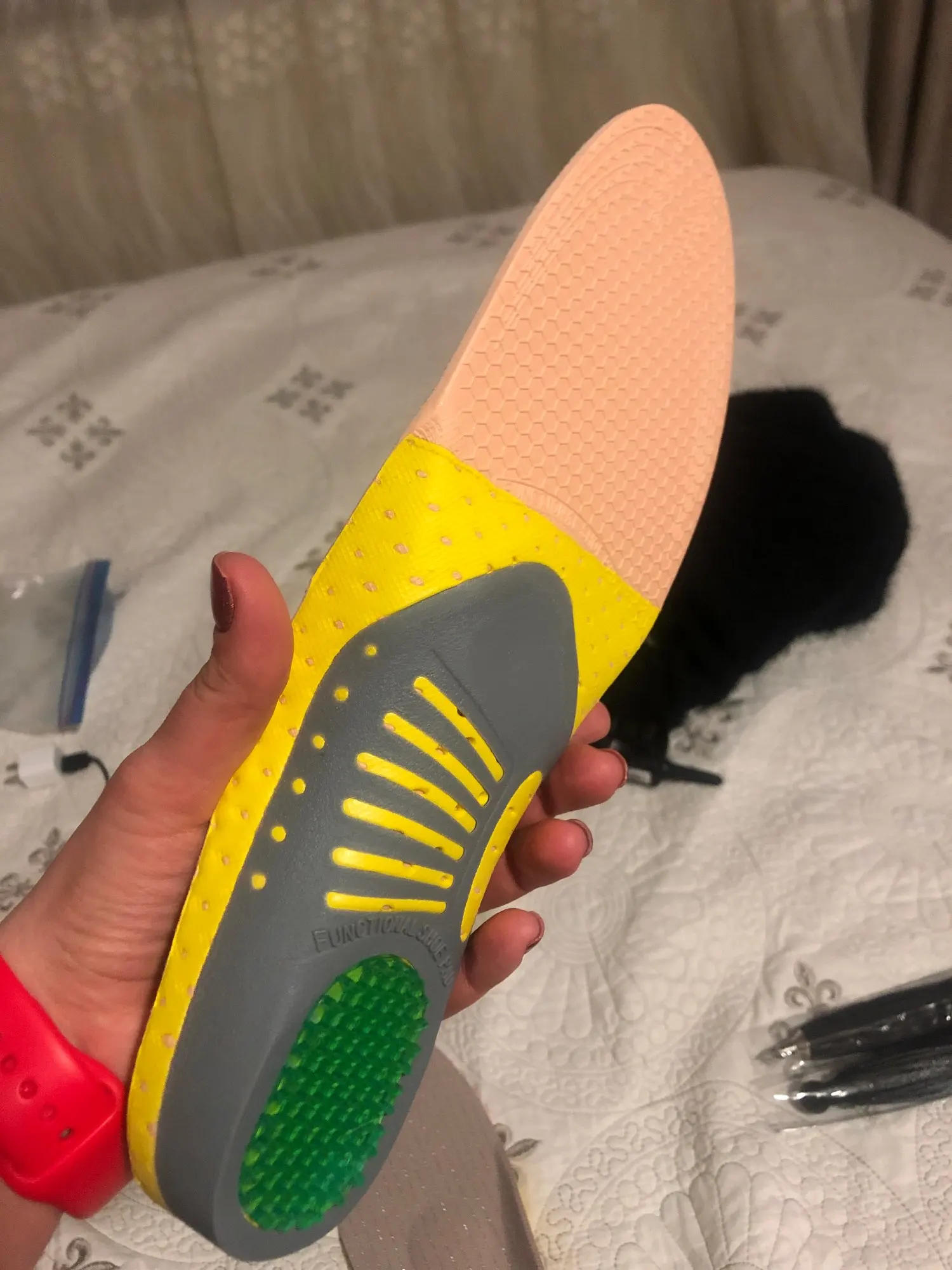 Все соответствует фото. В носке оказалось не так удобно, как хотелось бы. Вложила в кроссовки - выталкивает ногу и не комфортно. В ботинки-тоже не очень удобно. Сокращает объем обуви.