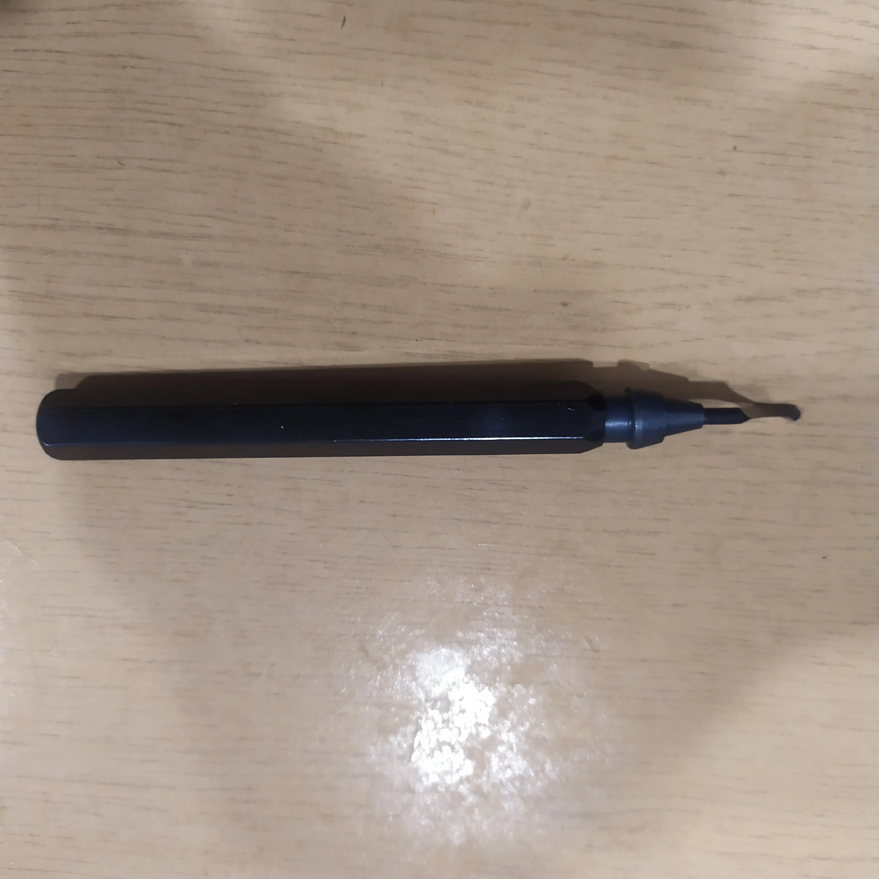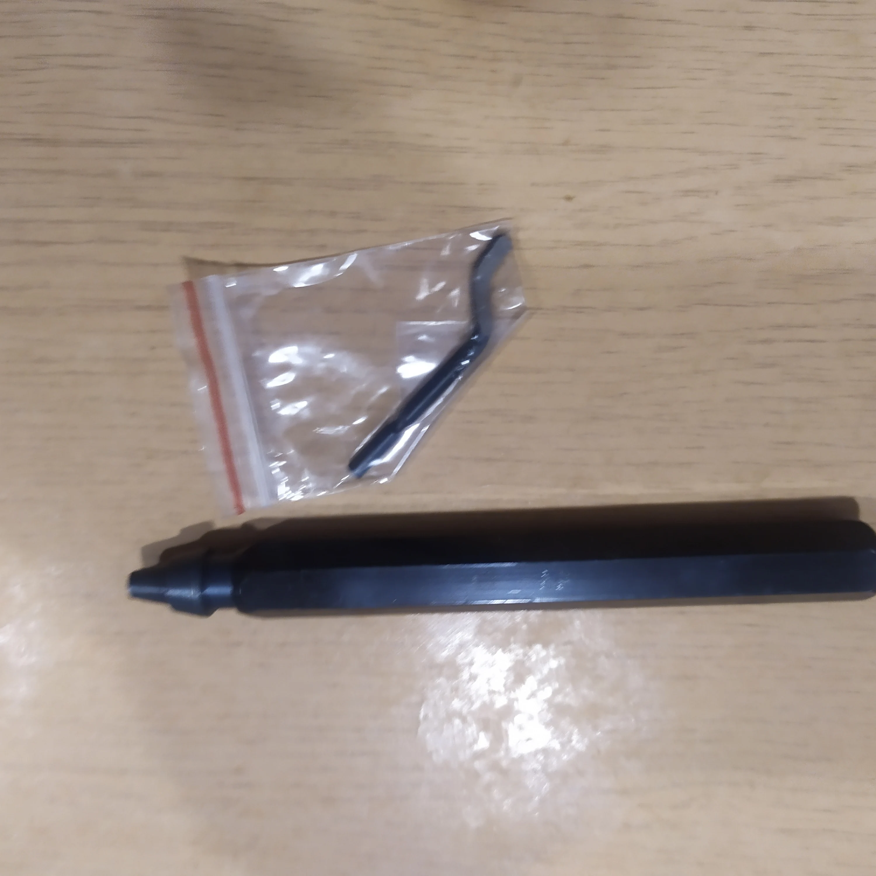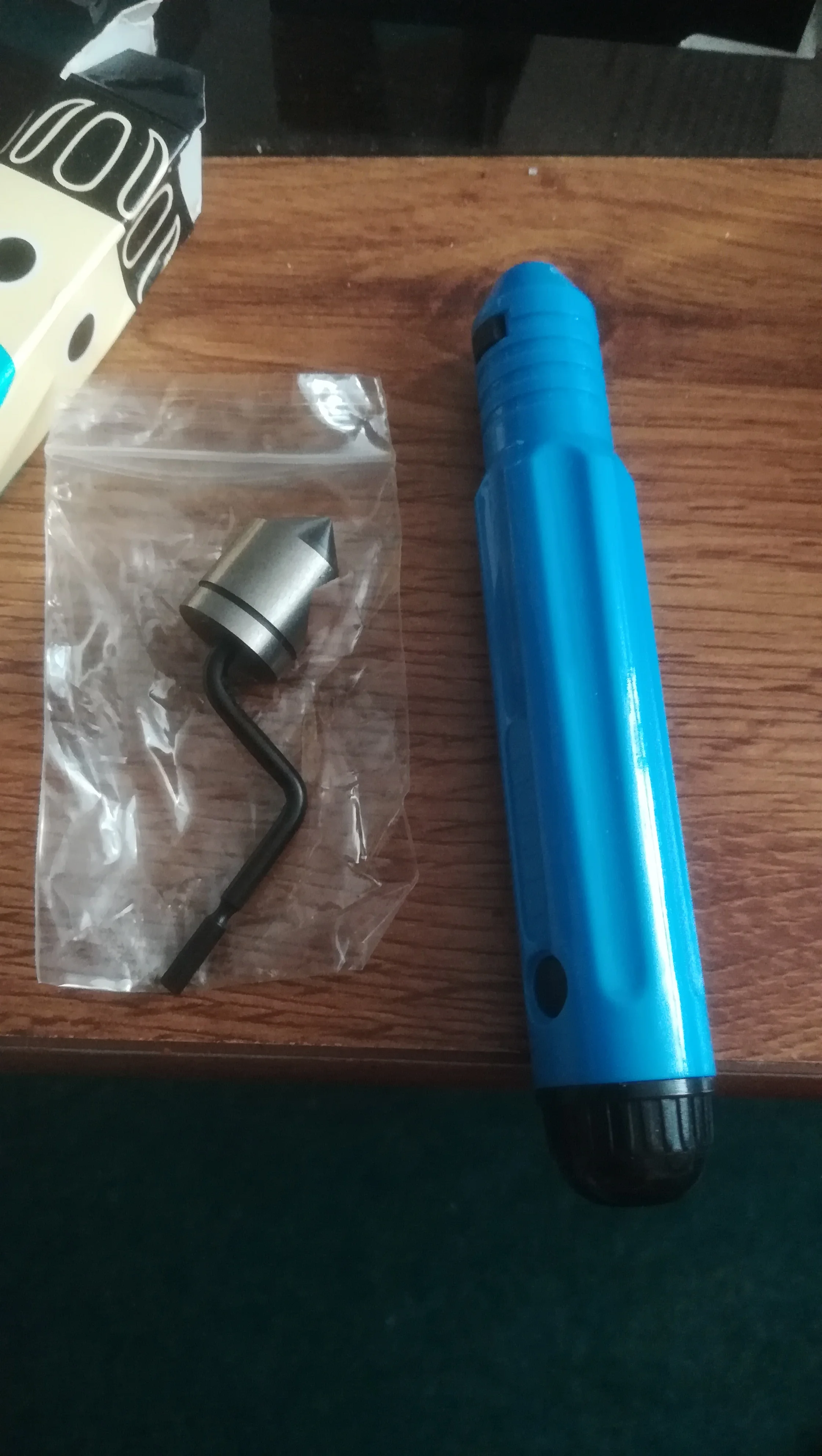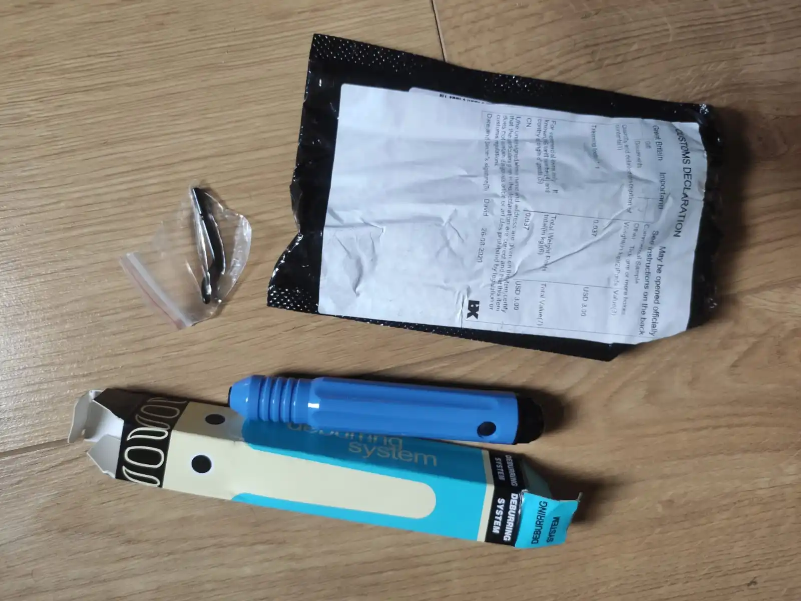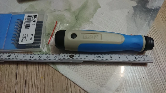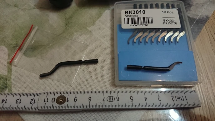 Товар получил (ножи к нему пришли раньше). В комплекте ручка и одна прямая шкрябалка (назначение её выясню позже). Протестировал по аллюминию с ранее купленными ножами - заусеницы срезает нормально. По железу и чугуну не пробовал. Единственный минус - конский ценник (видимо, со встроенным компьютером внутри :>)), надо было брать ручку пластмассовую по-дешевле. Думаю, функционал у неё такой же.
