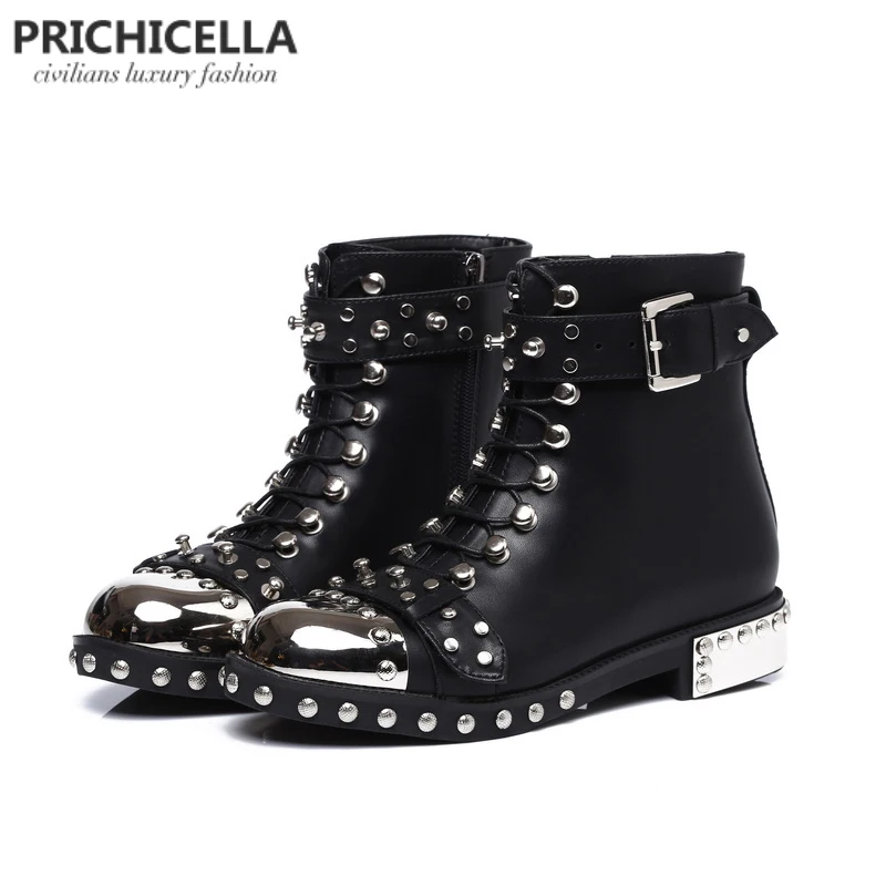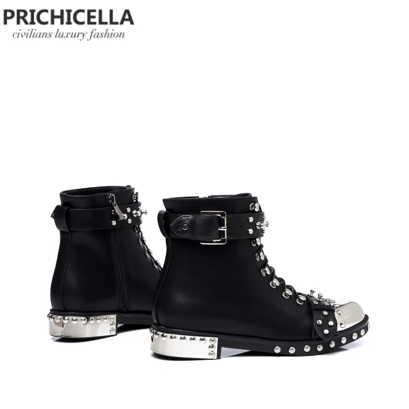 Ботильоны из натуральной кожи, на шнуровке, с шипами