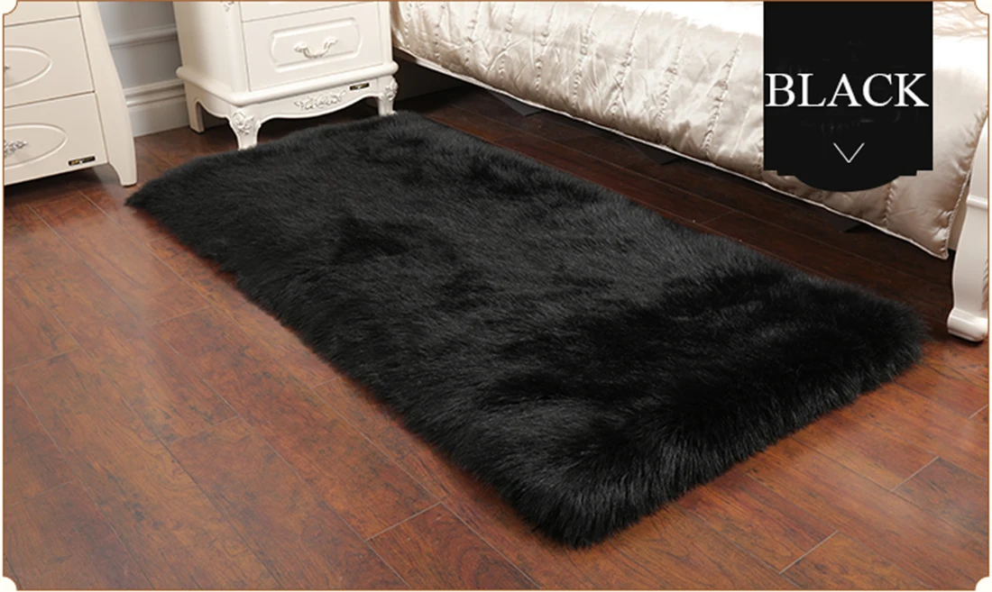 Черный коврик из искусственной овчины, одеяло из искусственного меха, ковер для спальни, декоративный прикроватный напольный коврик, коврики для гостиной, Рождества