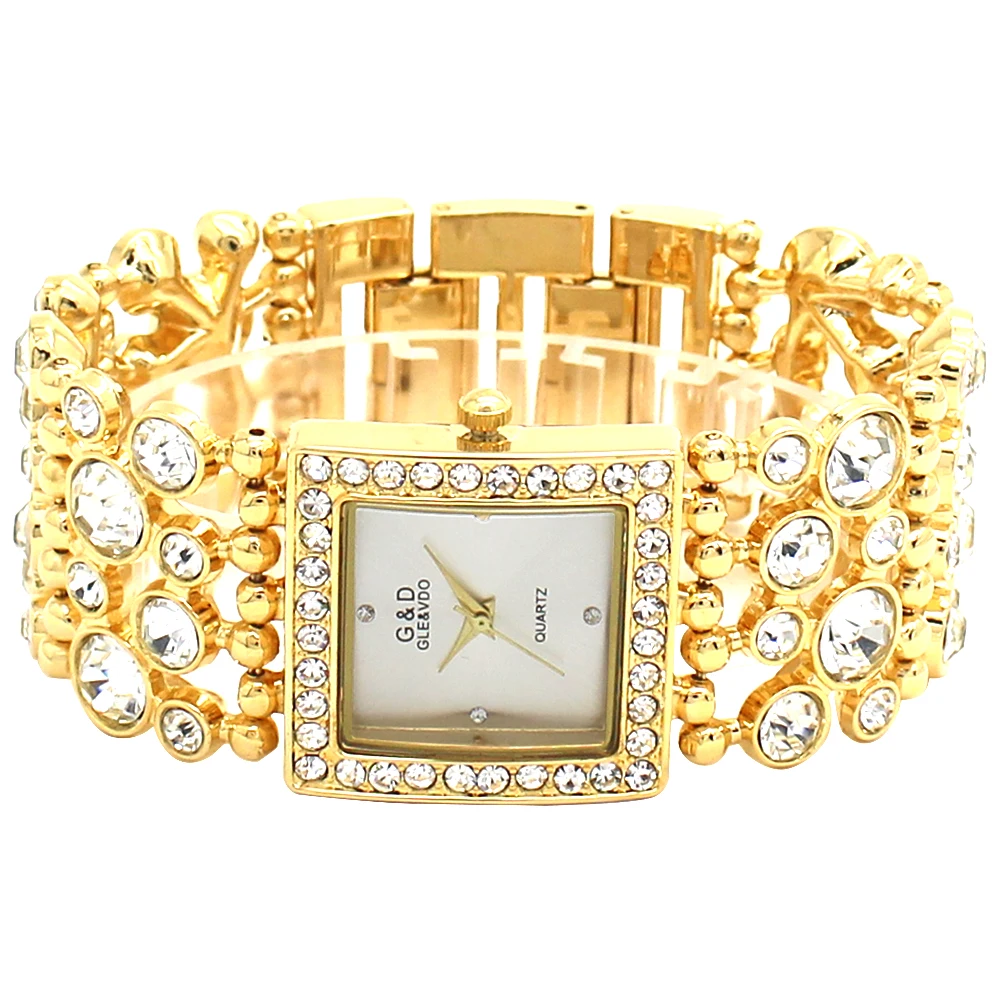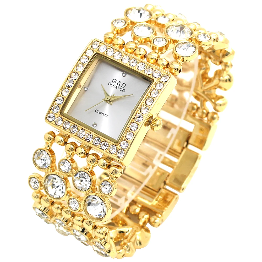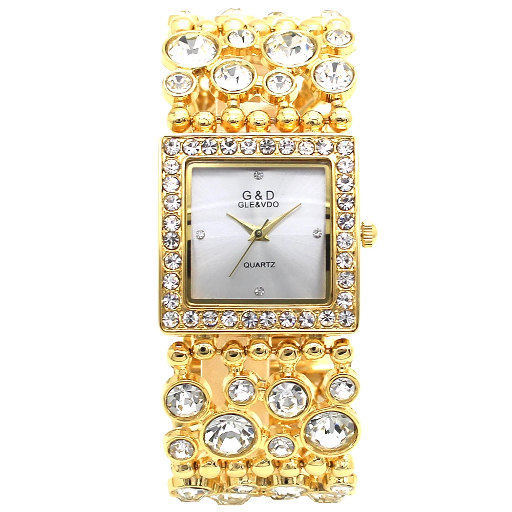 Женские наручные часы GLE VDO, роскошные стразы, женские часы Vogue кристалл, кварцевый браслет, свадебные наручные часы