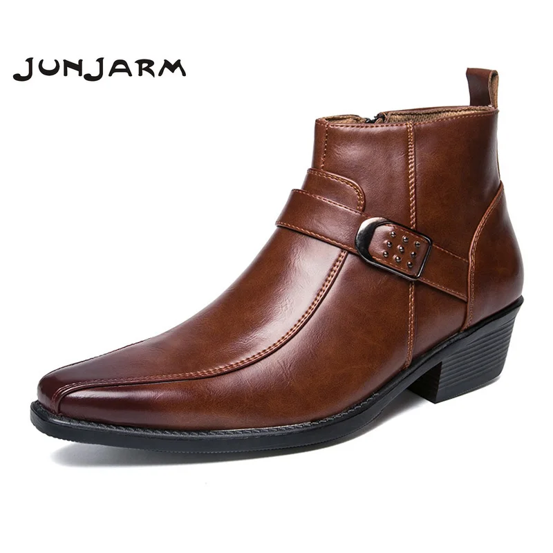 Мужские мотоциклетные ботинки JUNJARM, черные ботинки из микрофибры в британском ретро стиле, повседневная обувь с пряжкой, 2019