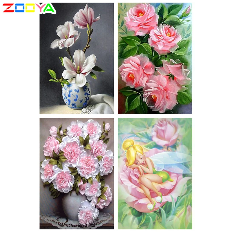 ZOOYA полноразмерная Алмазная картина, алмазная вышивка, цветы, искусственные кристаллы, 3D набор для творчества, мозаика, декоративные стразы SF085