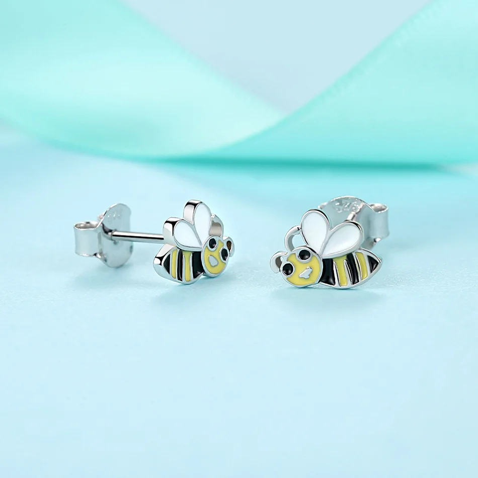 Рождественская коллекция животных, эмалированные серьги-гвоздики в виде пчелы для женщин и детей, оригинальное серебро 925 пробы, подарок на день ребенка