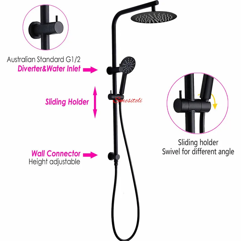Smesiteli 10 лет гарантии, все латунные матовые черные 8 ''или 10'' круглые дождевые ручные насадки для душа, набор направляющих для душа