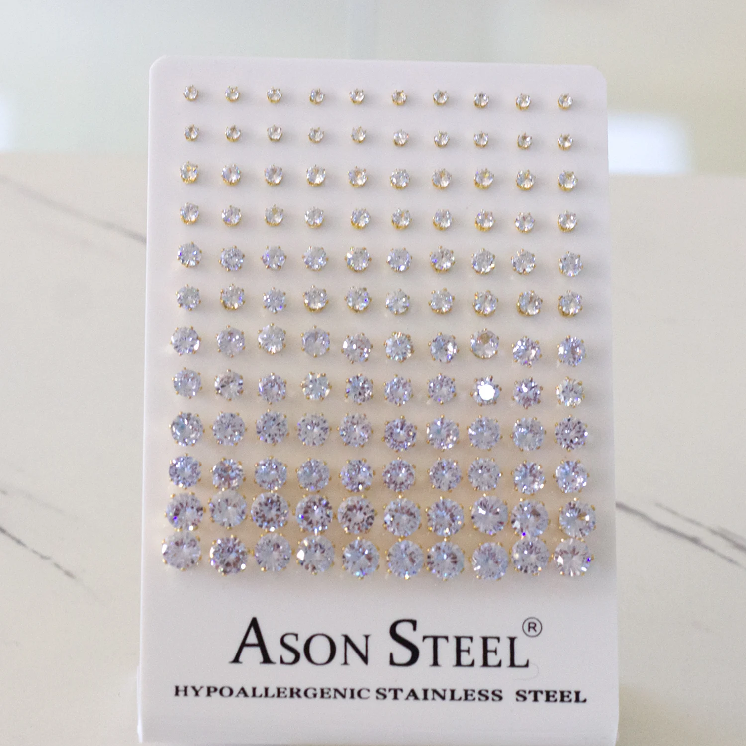 ASONSTEEL 60 парлот, оптовая продажа, прозрачные серьги-гвоздики, круглые гипоаллергенные серьги из нержавеющей стали, размер 3-8 мм (каждый размер 10 пар)