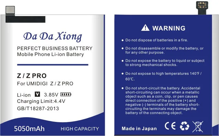 100% Оригинальный Da Xiong новый и высококачественный аккумулятор. Емкость:5050 мАч Напряжение: 3,85 В Тип: li-ion Совместимость: дляUMI Z батарея для UMI Z Pro батарея Umidigi Z сотовый телефон Безопасность и окружающая среда: двойные функции защиты. Двойная электрическая плата IC и PCB защищают от разрядки заряда и короткого замыкания. Наша батарея того же размера с оригинальной батареей. Два года гарантииПосылка включает в себя: