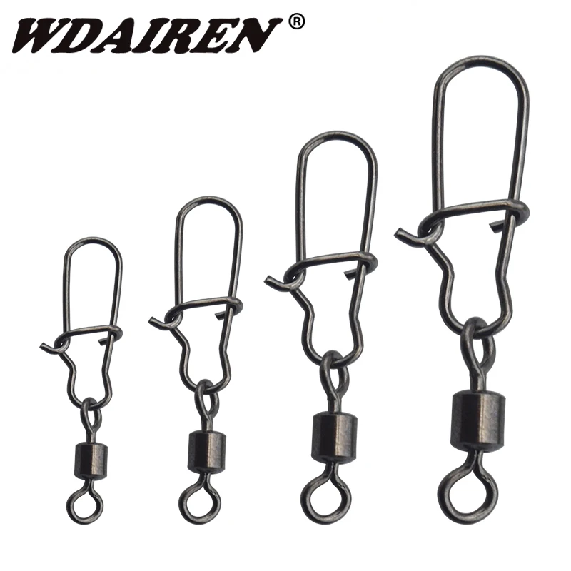 WDAIREN 50 шт.лот, рыболовный соединитель, вращающийся вертлюг с симпатичной защелкой, коробка для рыболовных снастей из нержавеющей стали WD-369