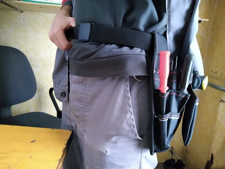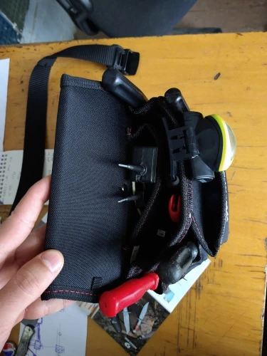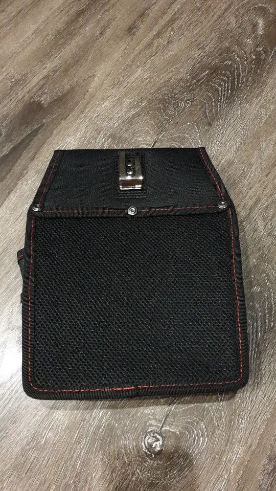 Отличная сумка Качественный материал и швы. Твёрдая задняя стенка плотно прилегает к бедру. При ходьбе из неё ничего не вываливается. Инструмент помещается весь. В моём случае даже есть лишнее место. Ношу её на отдельным ремне (не идёт в комплекте). Пару дней использования и при смене инструмента не глядя попадаешь отвёрткой в нужный карман. Удобно, надёжно, не дорого. Рекомендую.