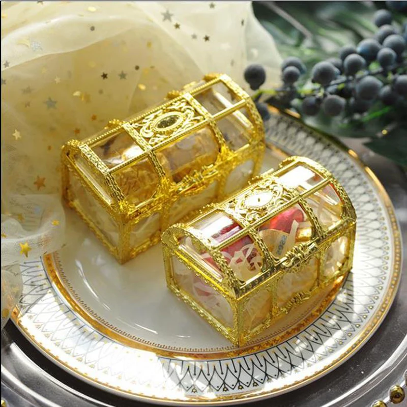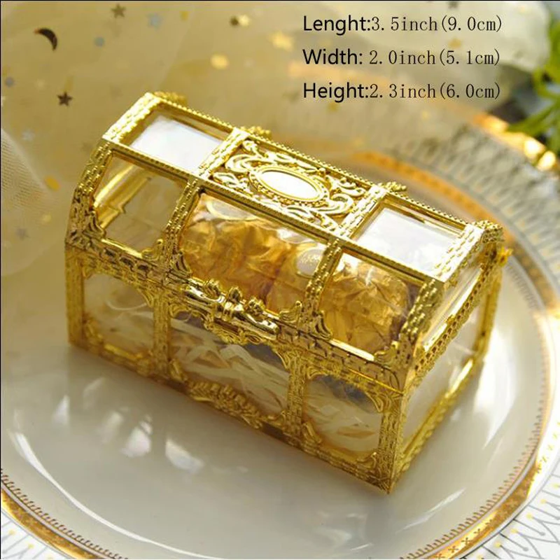 20 штук16 шт. Топ Класс большой Размеры Treasure Box Роскошные золотые прозрачный Пластик свадебный подарок Коробки Baby Shower коробка конфет шкатулка для ювелирных изделий