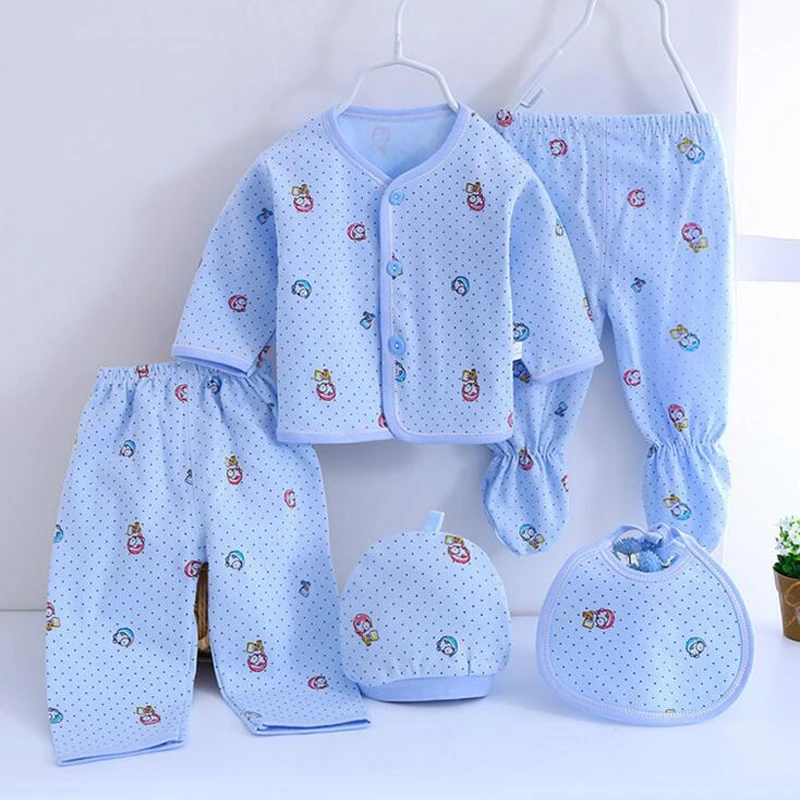 Комплект одежды для новорожденных хлопковые костюмы для маленьких девочек и мальчиков детские костюмы, штаны + топ + шапочка + нагрудник, 5 шт.компл.