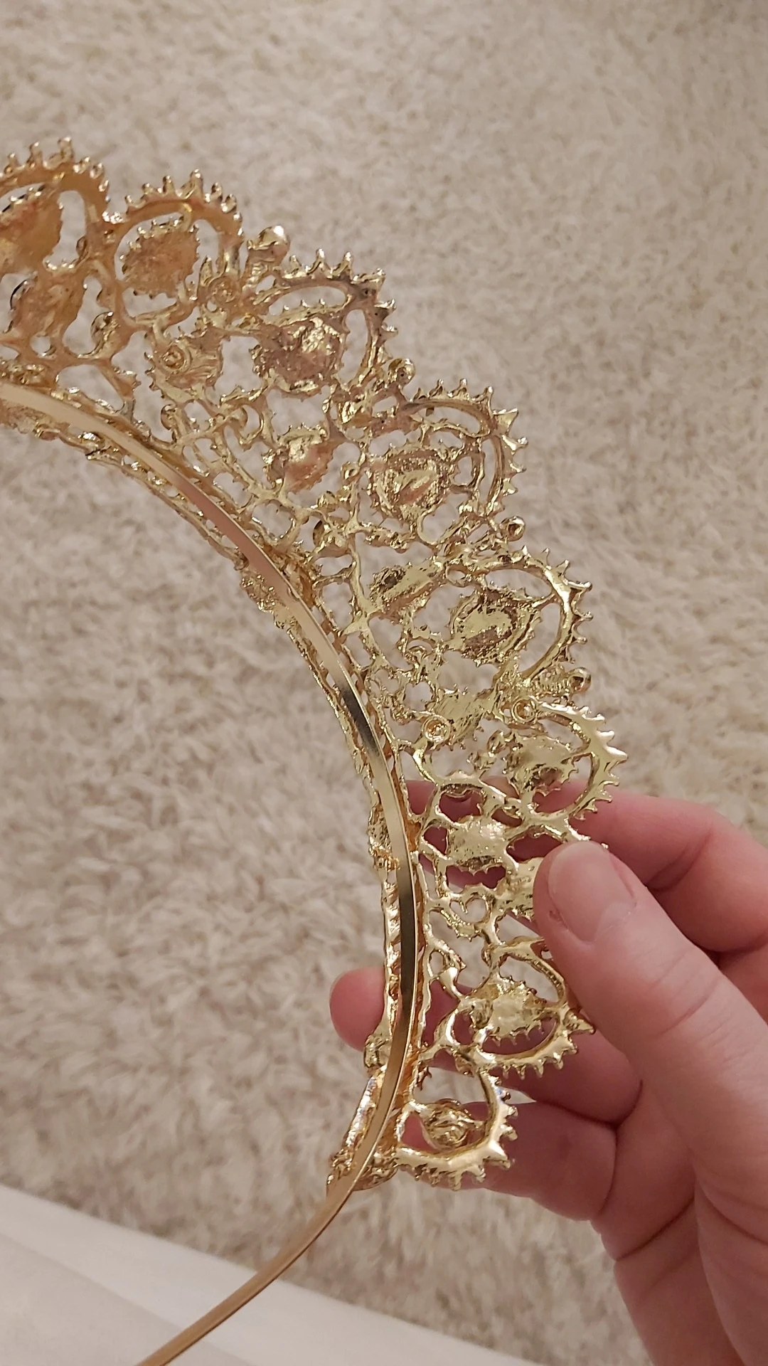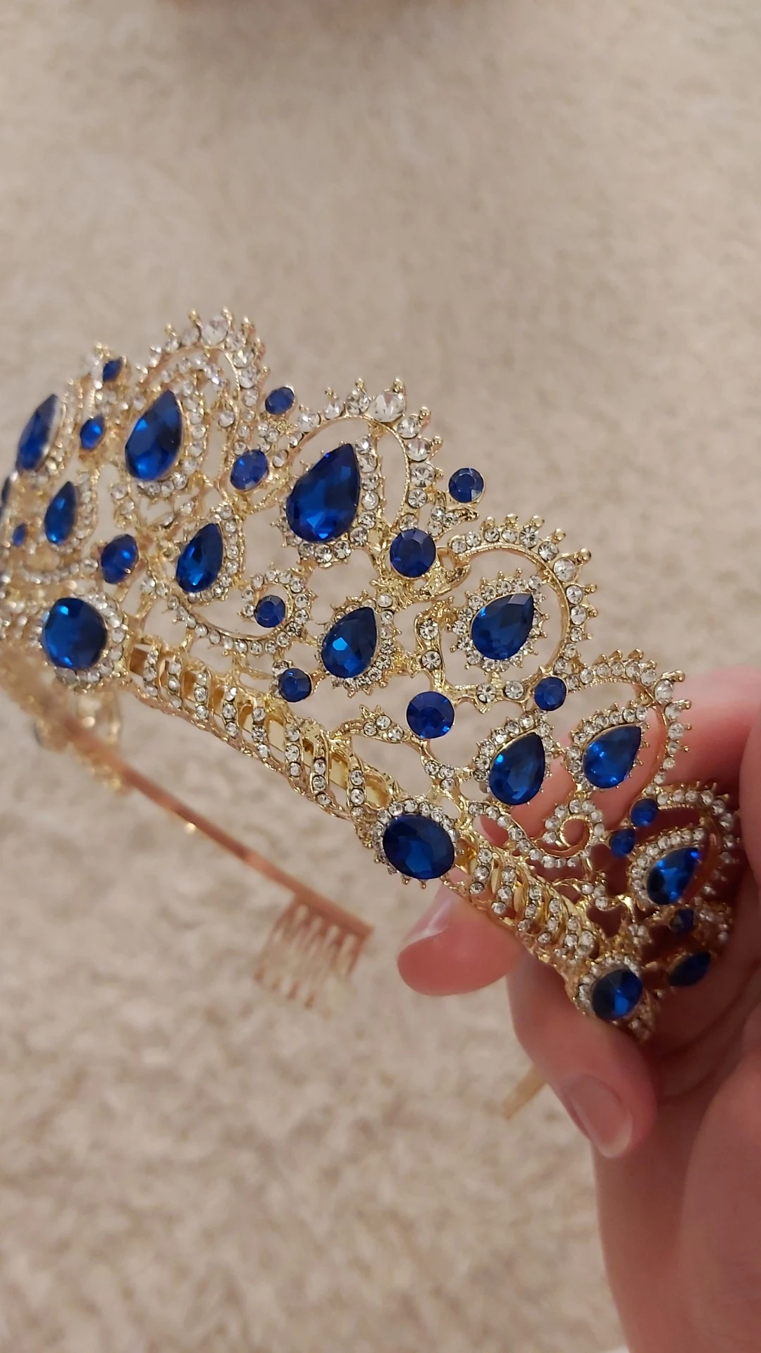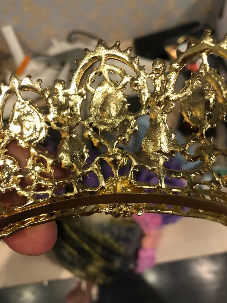Корона красивая, но очень маленькая в диаметре, гребешочки на диадеме сильное давление в голову. Хотя такую же самую принимала серебряную без гребешков у другого продавца то она намного больше