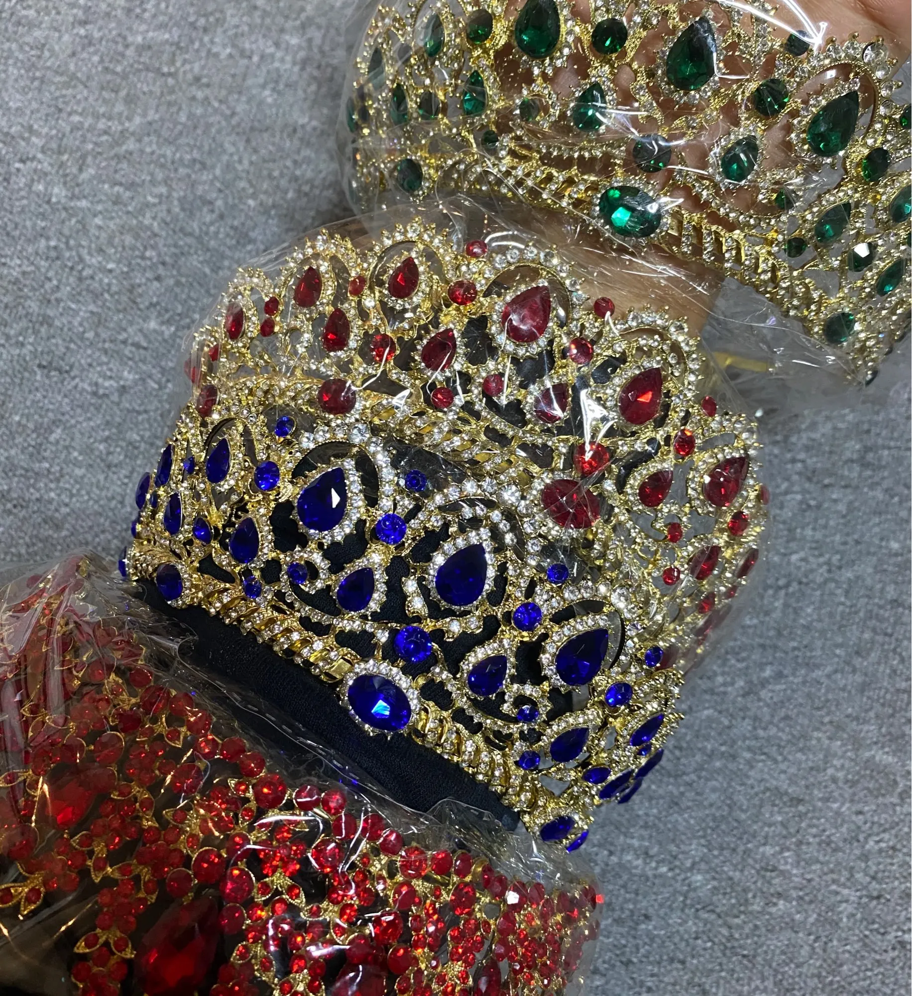 Золотая тиара KMVEXO, золотая тиара с зеленымикрасными кристаллами