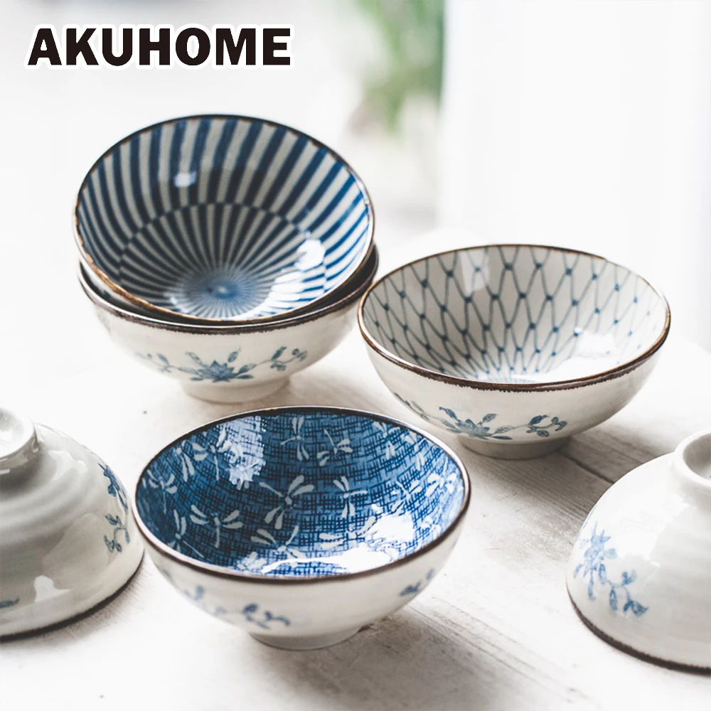 Фарфоровая чаша для супа в японском стиле, Керамическая пиала для риса, 8 цветов, 4,7 дюйма, Цветочная линия