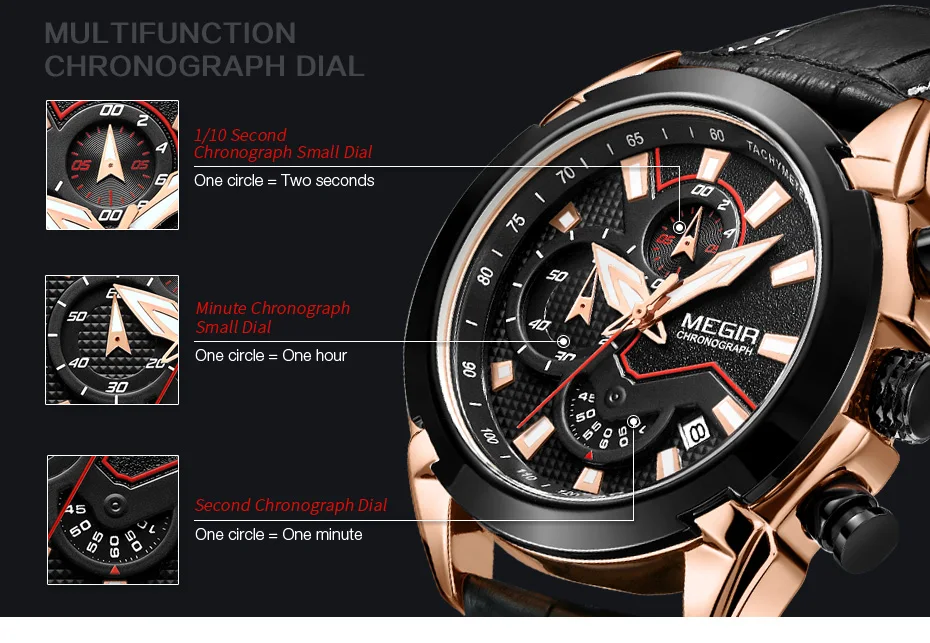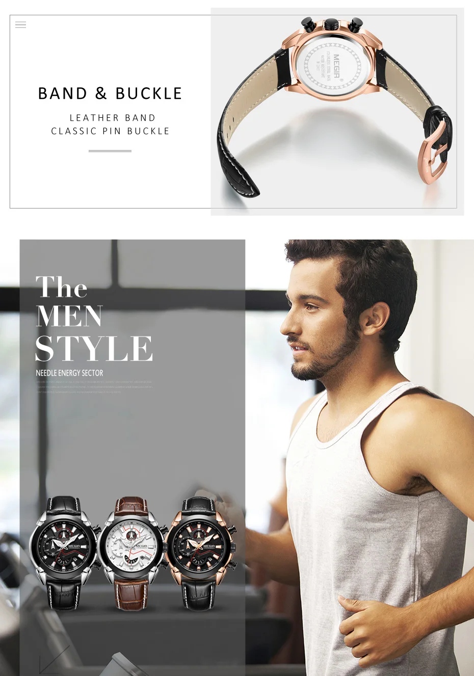 Часы мужские кварцевые MEGIR, с кожаным ремешком и хронографом