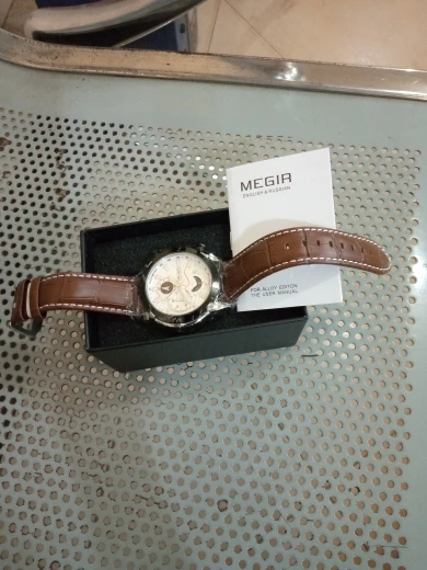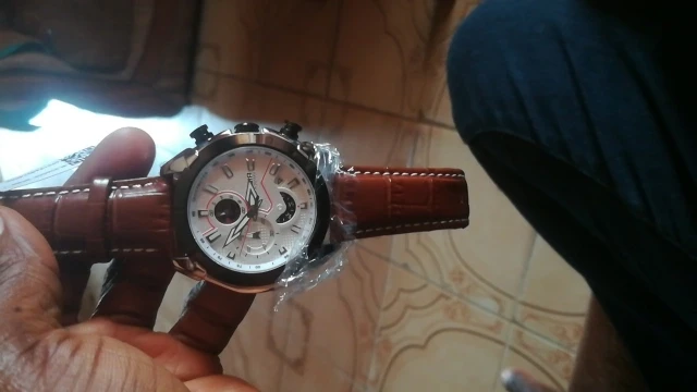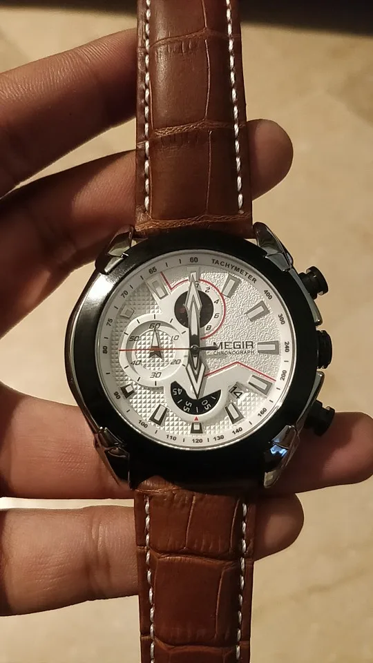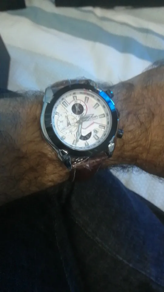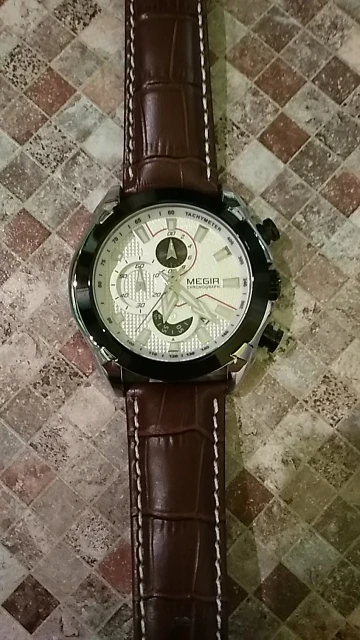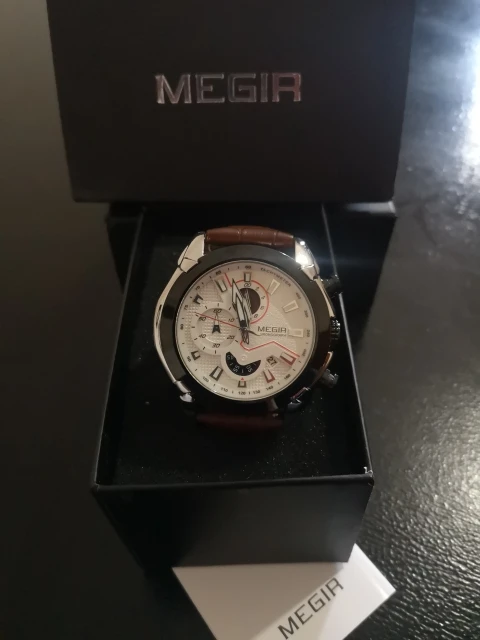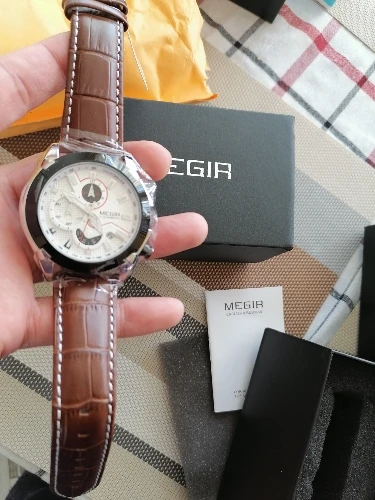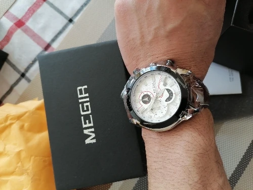 el reloj es tal cual como se ve en las imágenes..llegó en perfectas condiciones no demoró mucho en llegar solo demoró 35 días hasta la Patagonia chilena,un reloj semiclasico, elegante ,un poco pesado,la correa en perfectas condiciones. pedí 2 colores el mismo día y el despacho me lo hicieron el mismo día pero llegó uno primero hace 15 días y el otro apenas hoy. gracias al vendedor ...