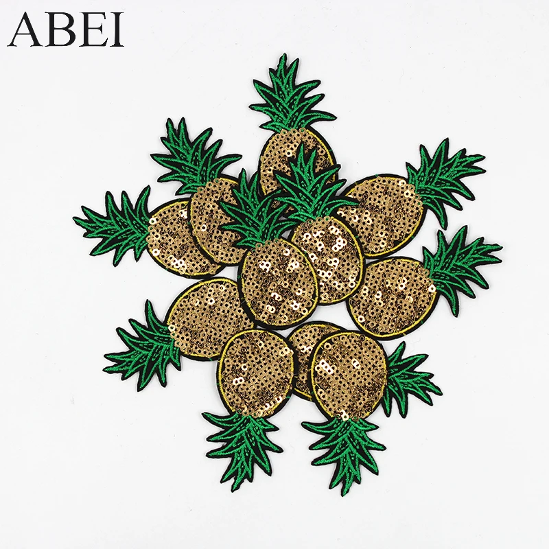 10 шт.лот сделай сам, ананас, патчи для утюга на одежде, вышитая блестящая аппликация, ручная работа, наклейки для сумок, значки, аксессуары