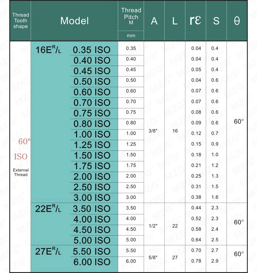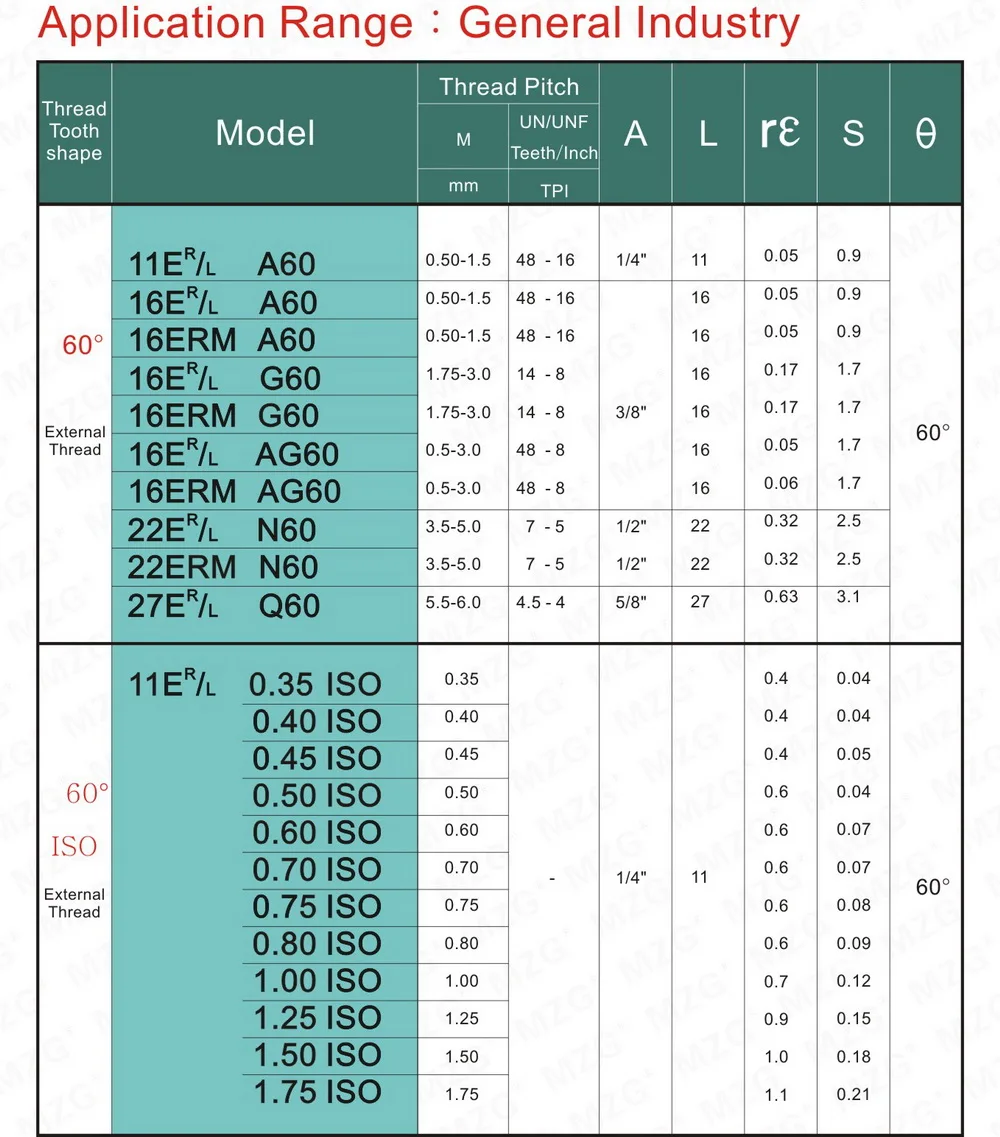 1.MZG вставки из карбида вольфрамаMZG карбид вольфрама вставки параметры спецификации