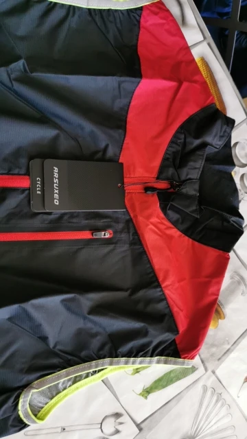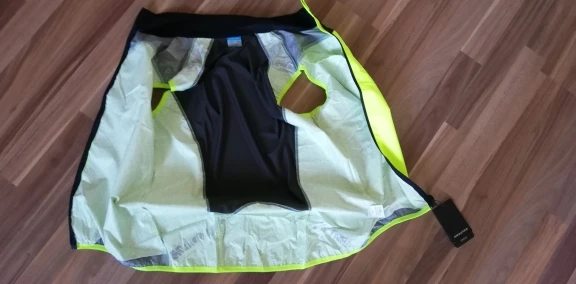Как описано в сообщении. Хорошо обработанный, легкий, помещается в кармане maillot и прекрасно режет ветер. Размер L хорошо подходит для 1,84 м и 74 кг