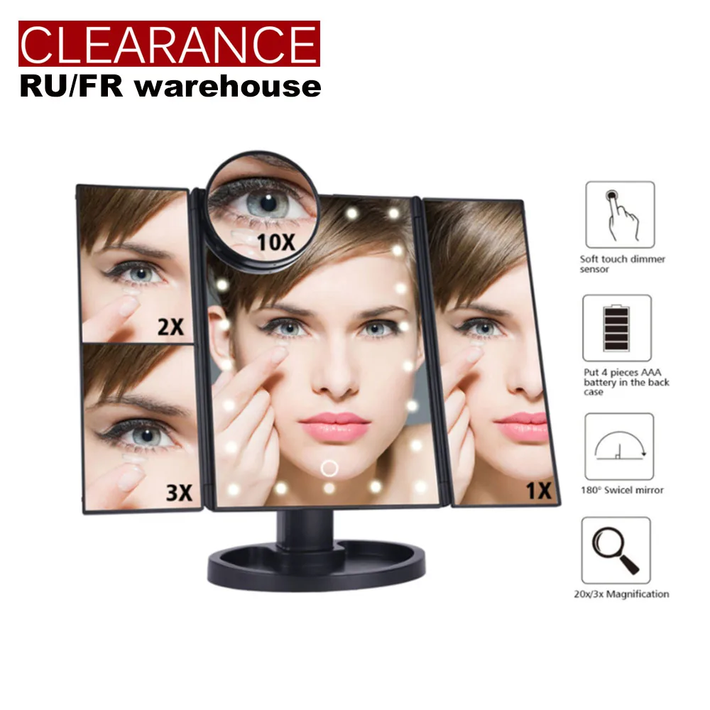 Зеркало для макияжа складное с сенсорным экраном, 22 светодиода, ув...