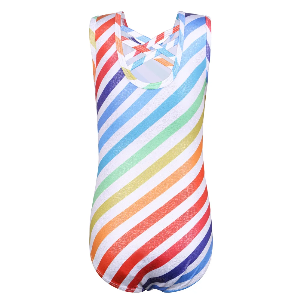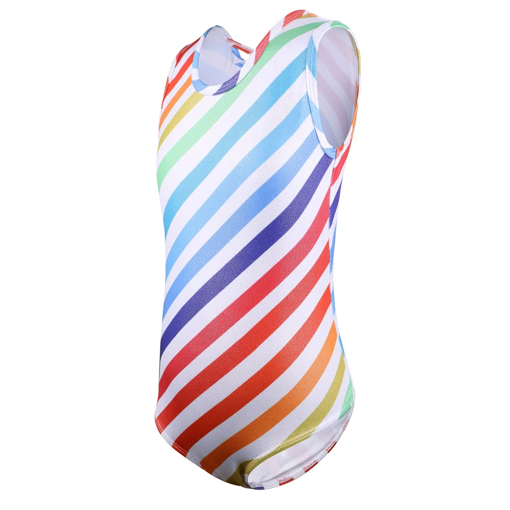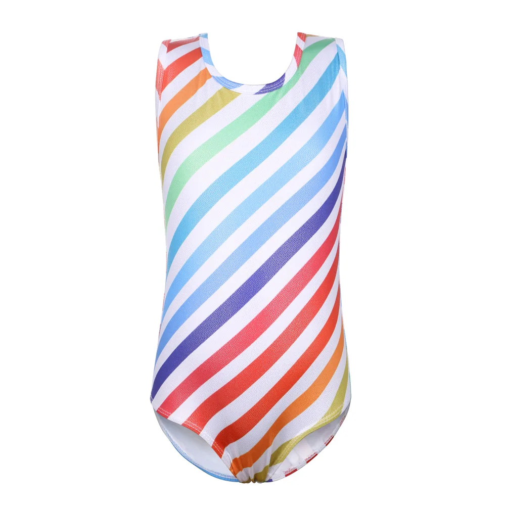 Танцевальный купальник BAOHULU для девочек, без рукавов, для катания на коньках, гимнастики, комбинезон, акробатика с цветными линиями, танцевальная одежда для девушек