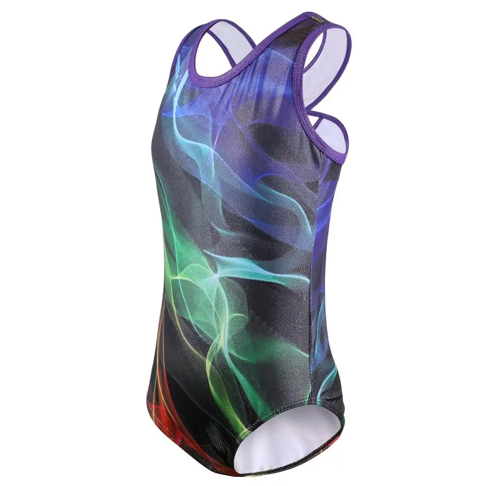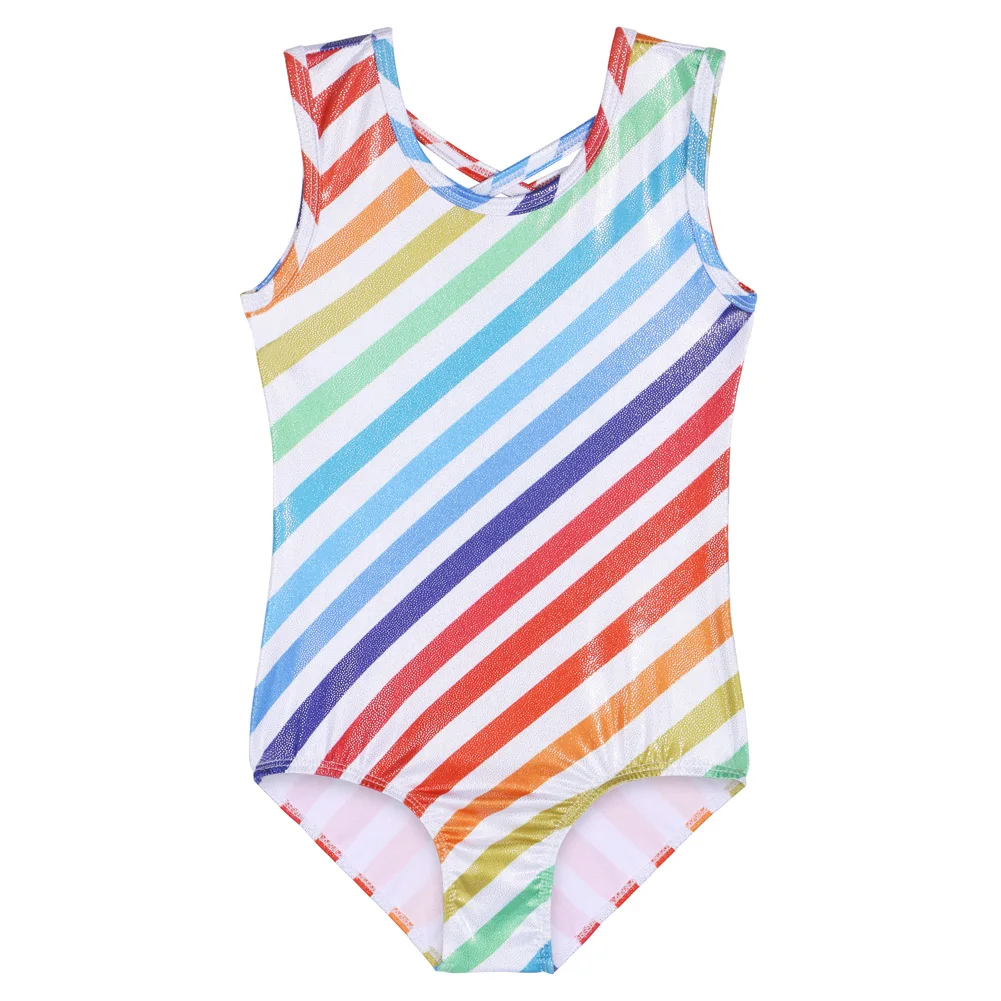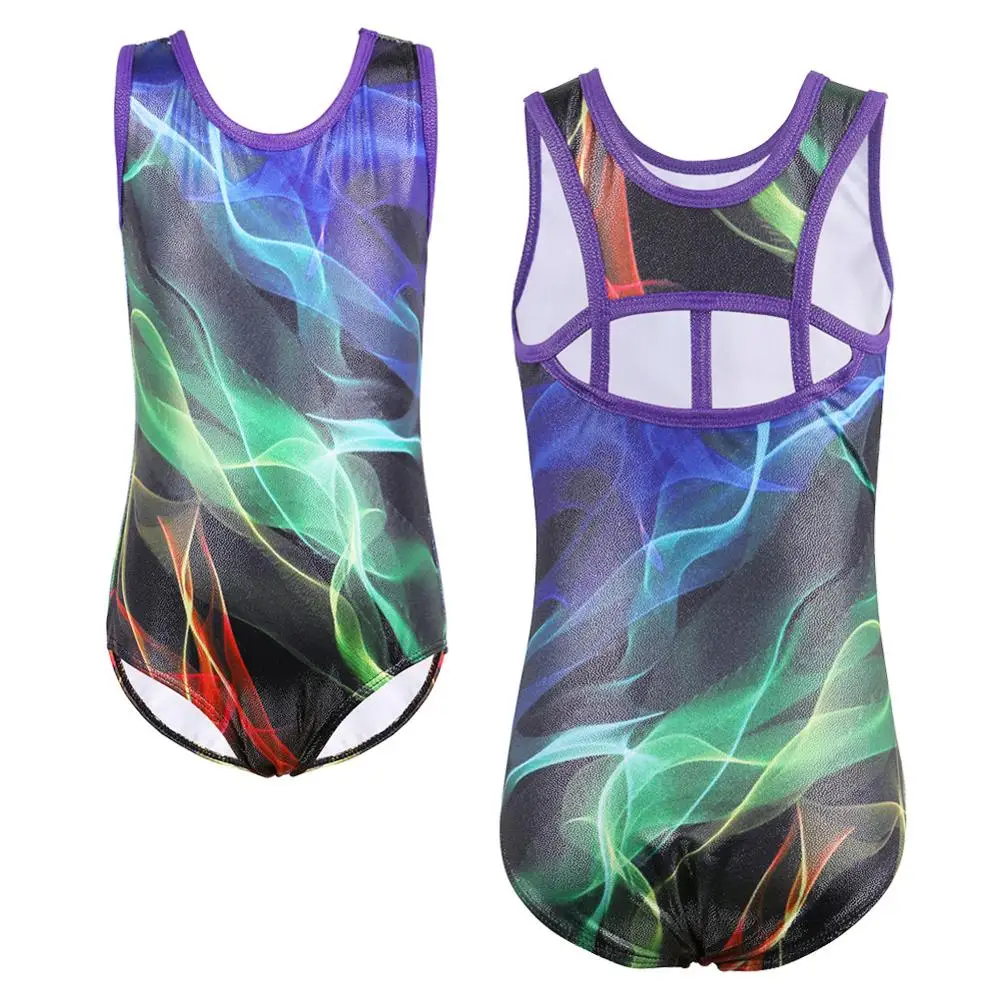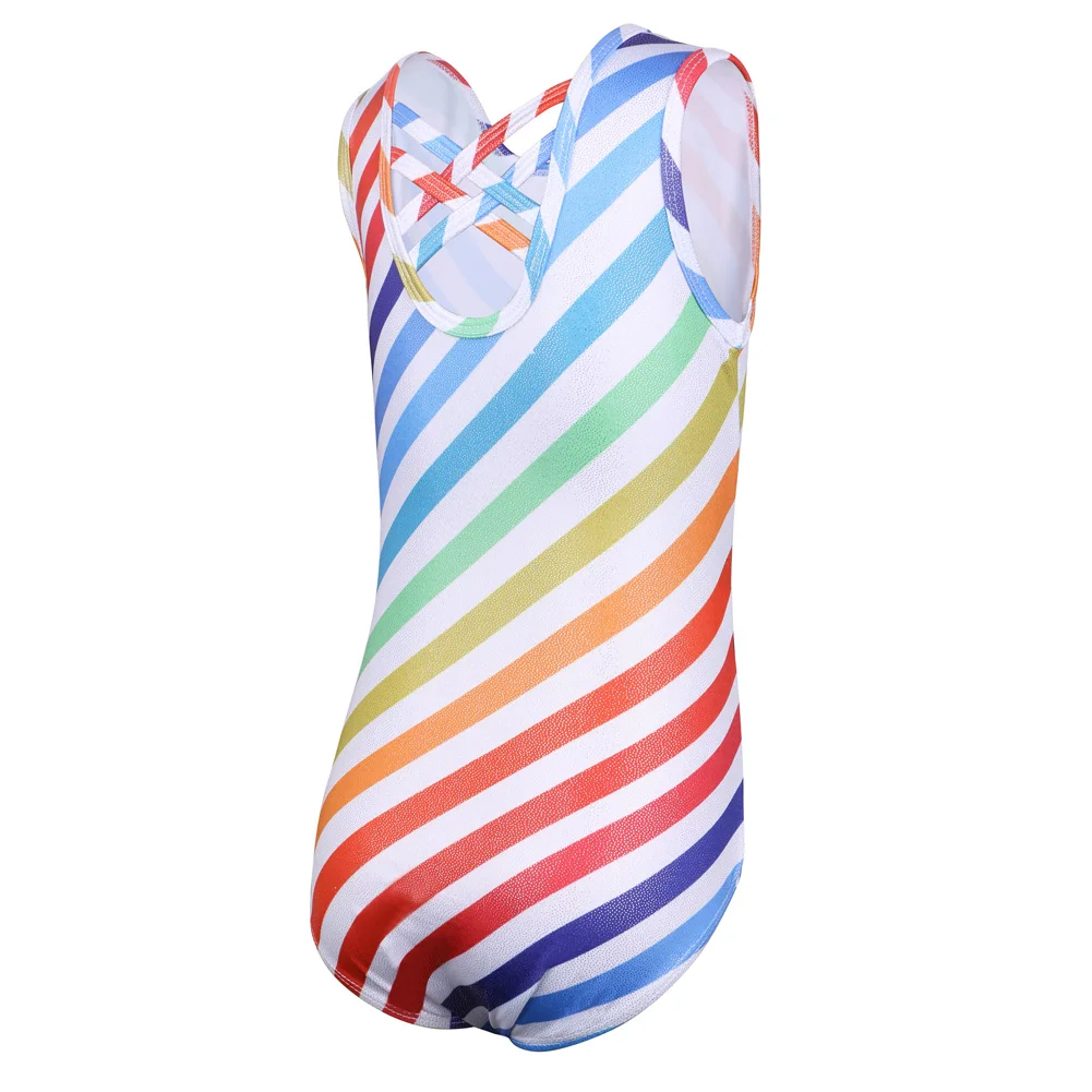 Танцевальный купальник BAOHULU для девочек, без рукавов, для катания на коньках, гимнастики, комбинезон, акробатика с цветными линиями, танцевальная одежда для девушек