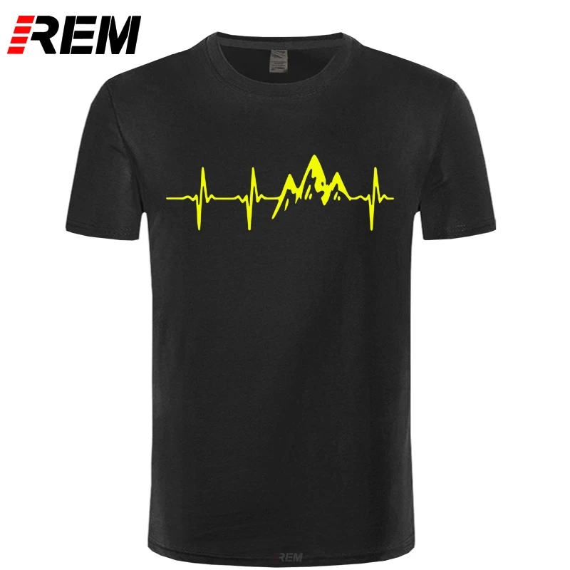 Футболка REM Mountain с изображением сердцебиения, модная смешная футболка из 100% хлопка с короткими рукавами, повседневный топ с круглым вырезом в стиле хип-хоп