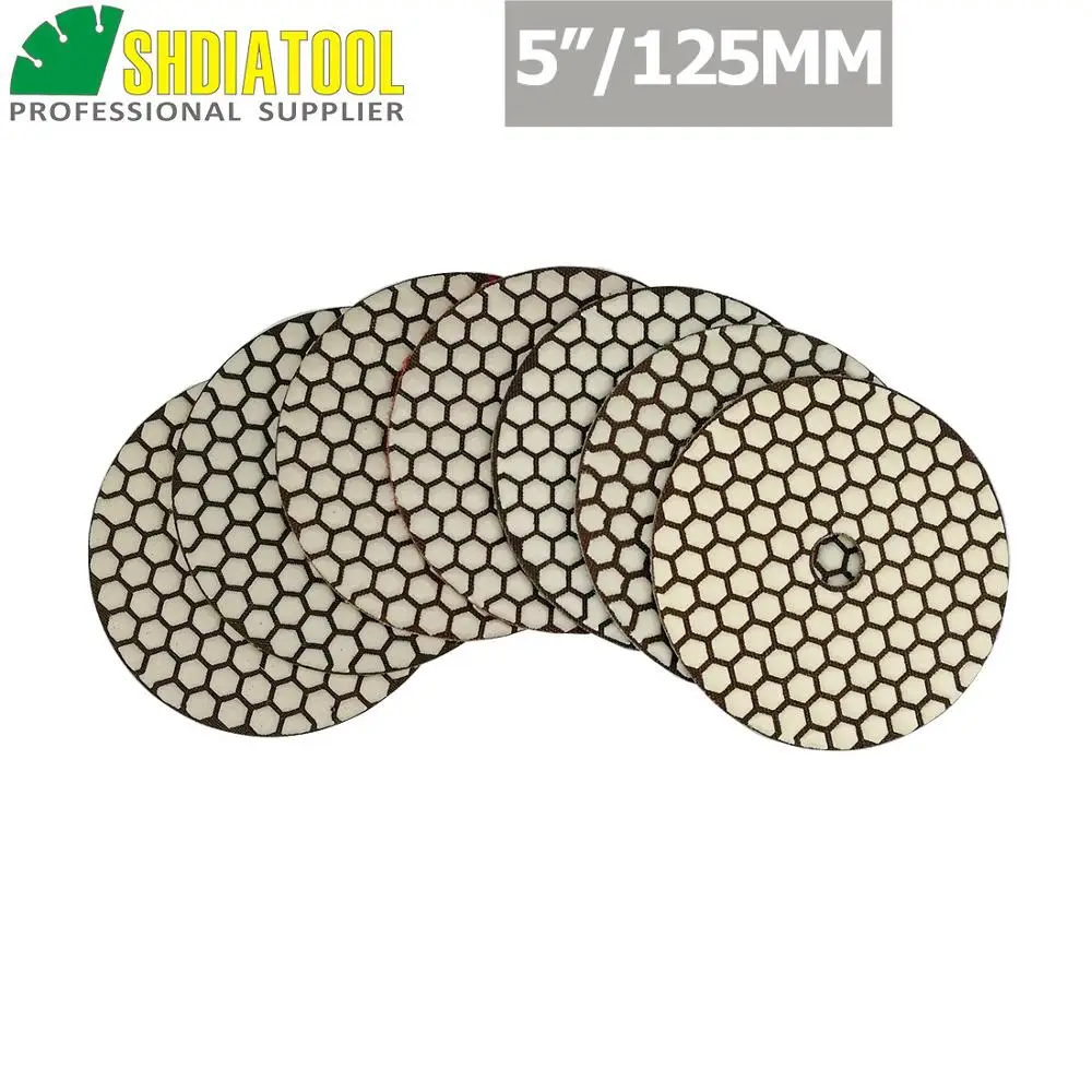 SHDIATOOL 7 шт. Диаметр 5 "125 мм Алмазный сухой полировальные колодки Смола Бонд гибкие шлифовальные диски гранит керамическая абразивная полировальная насадка